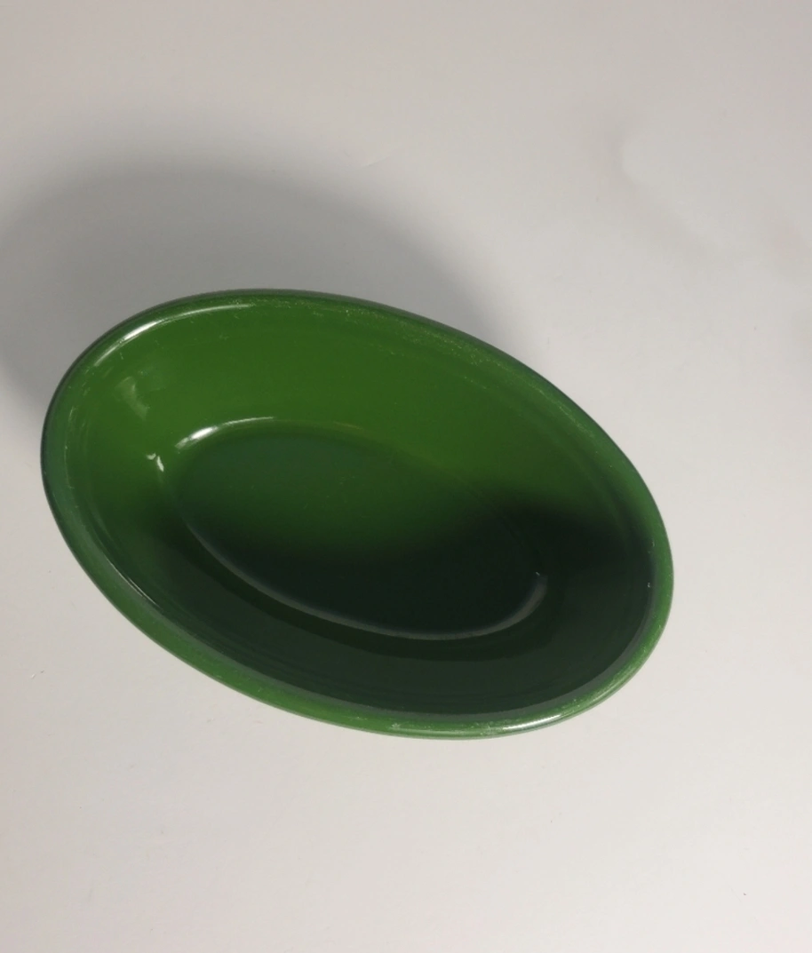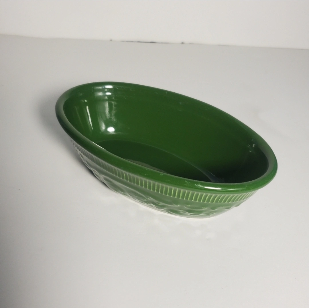 Vintage Genuine Glass Ovenware Small Green Oval Bowl TST Serving USA Dish Oval Bowl Color: Green Measurements: Approx. 6" X 4" Some of the paint is faded No Chips, Crazing, or Cracks Please see pictures for imperfections Good Condition