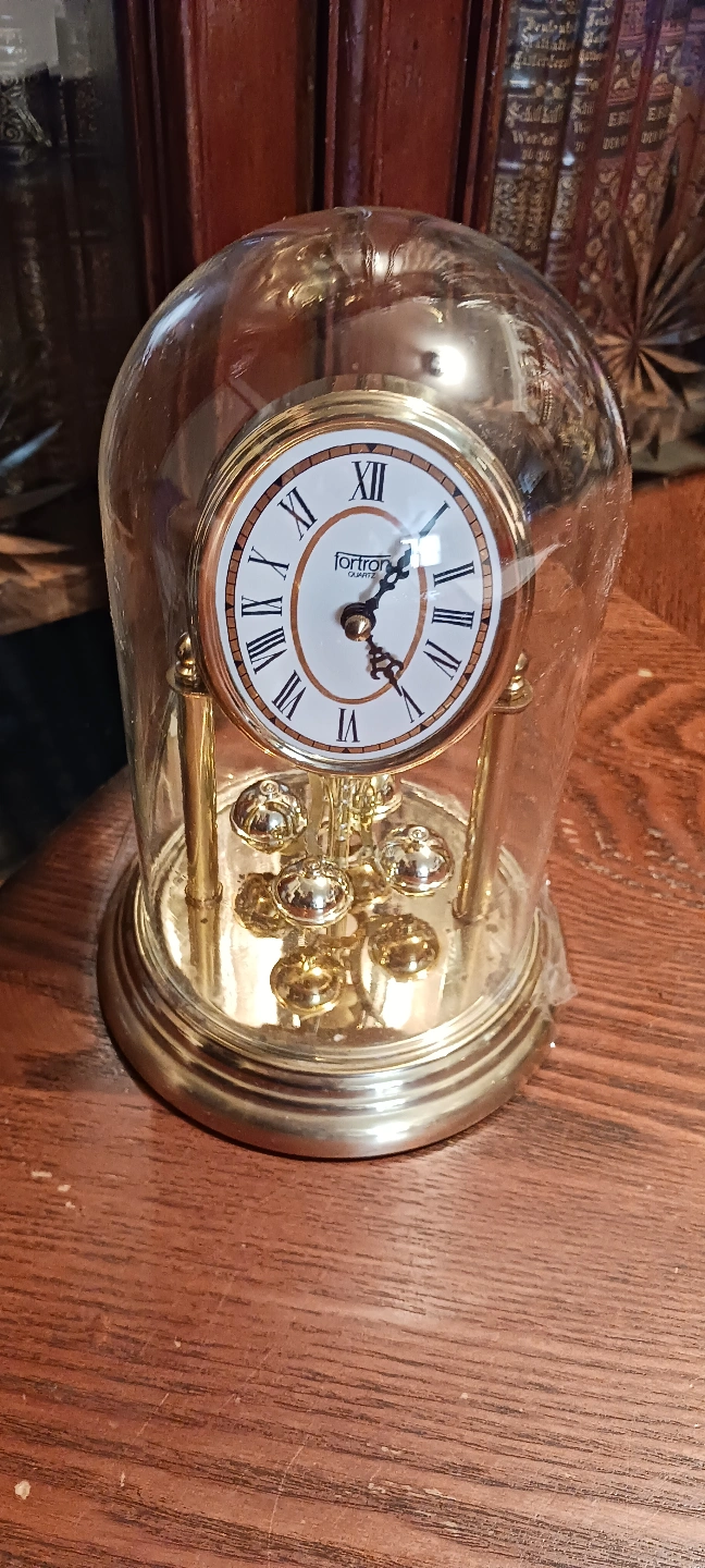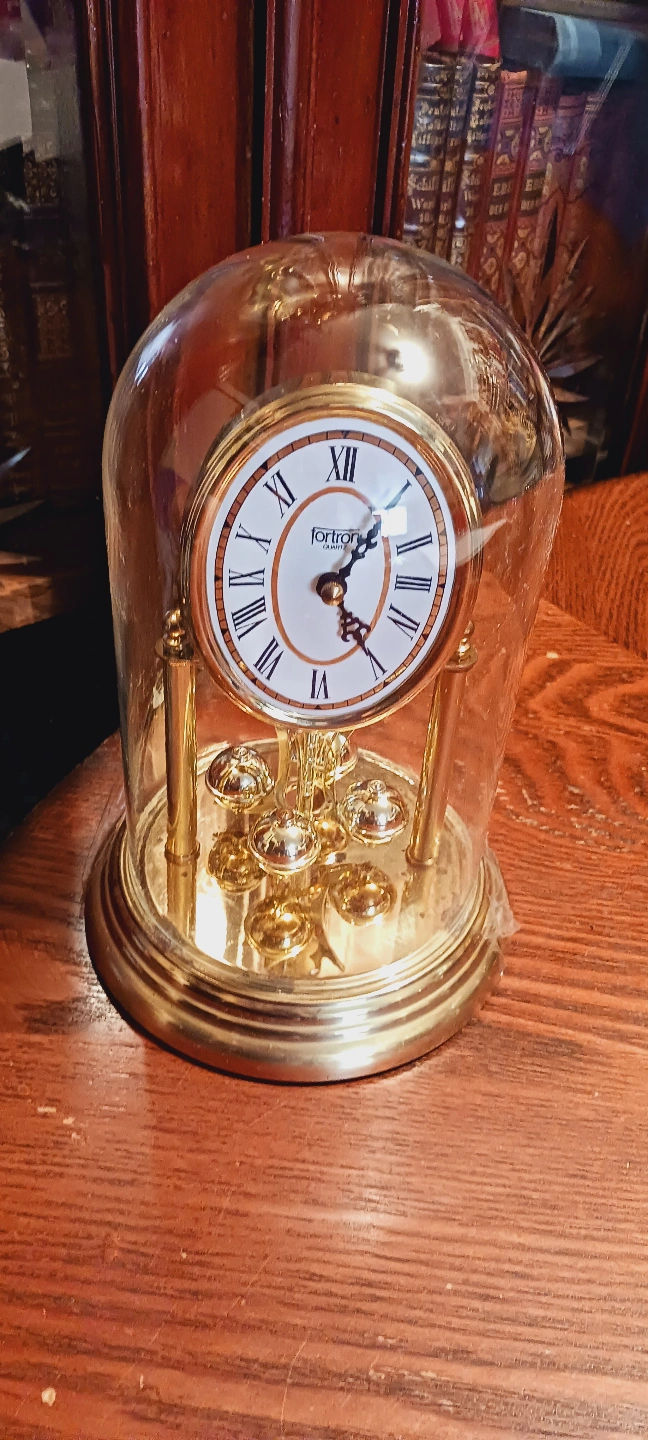 1000+Beautiful Vintage Gold Tone Mantel Clock with Glass Dome Cover. Roman numerals. Looks great on a mantle or shelf. IT IS NOT WORKING, SELLING AS IS !! 9"×6".