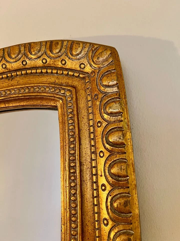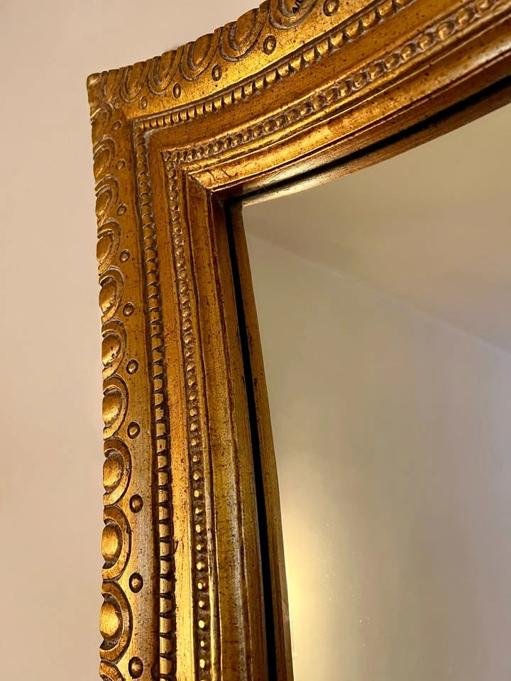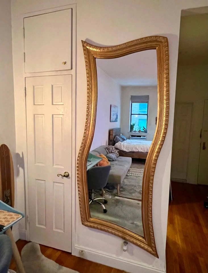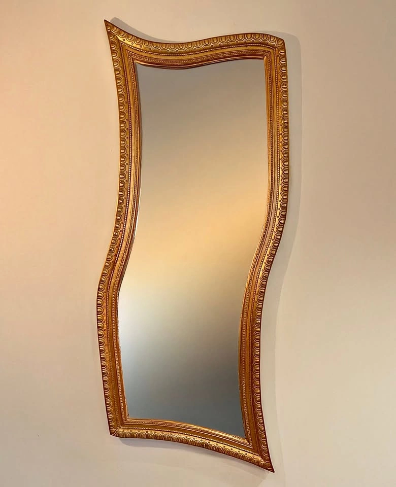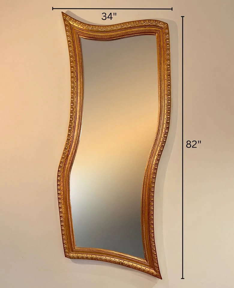 Stunning one-of-a-kind vintage mirror made by Windsor Art & Mirror Co. in California (dated 1999). The sculpted wavy gold frame gives it a surreal, Dalí-inspired feel while remaining elegant and timeless. It’s a true statement piece that instantly transforms and opens up a space, whether hung vertically or horizontally. At 82” tall and 34” wide, it’s substantially larger than most floor mirrors. Everyone who’s seen it comments on how striking it looks in person. I’m ready to pass it on to someone who’ll appreciate its uniqueness as much as I have. Date: April 20, 1999 Condition: Excellent vintage condition; mirror glass is flawless and frame has only light wear consistent with age. Finish: Ornate gold frame with sculptural curvature Display: Hang vertically or horizontally Fairly priced given its size, craftsmanship, and unique design. Pickup in Hell’s Kitchen, NYC
