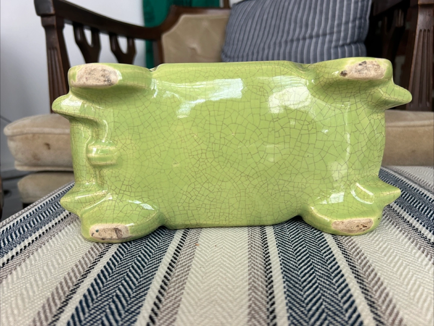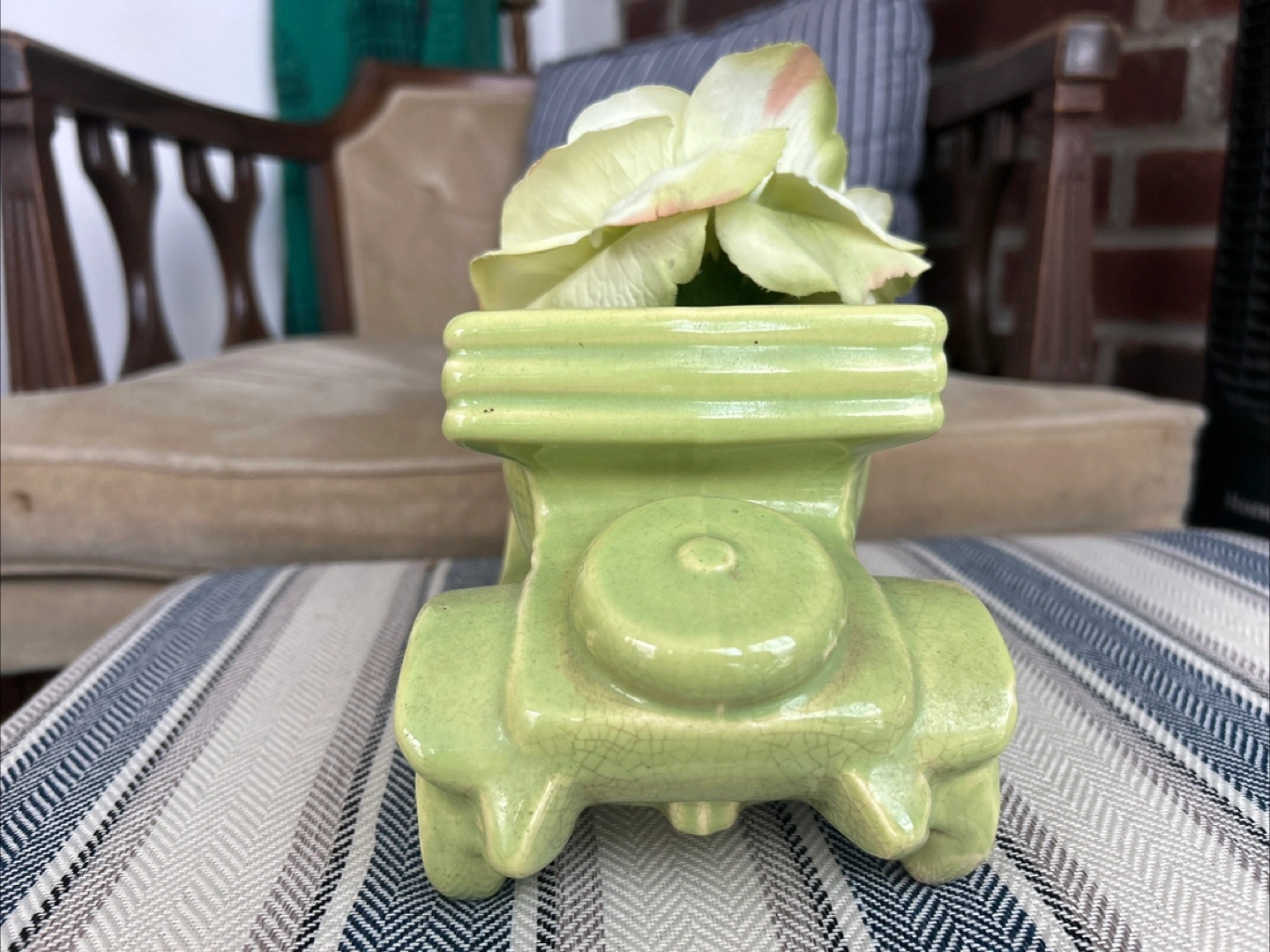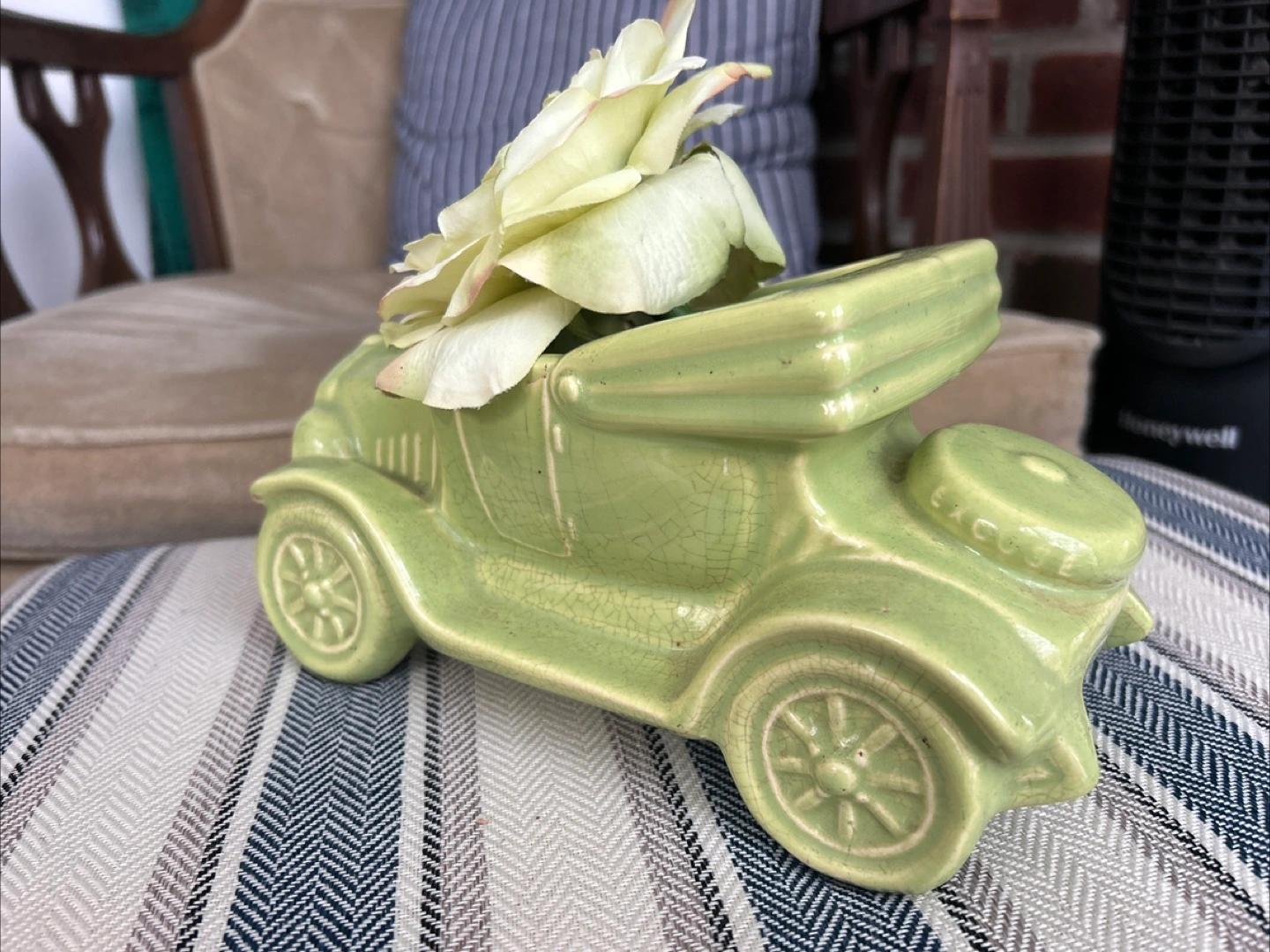 Selling a cute vintage ceramic planter shaped like an old-timey car! It's a lovely light green color and in great condition. Perfect for adding a touch of whimsy to your home or garden.