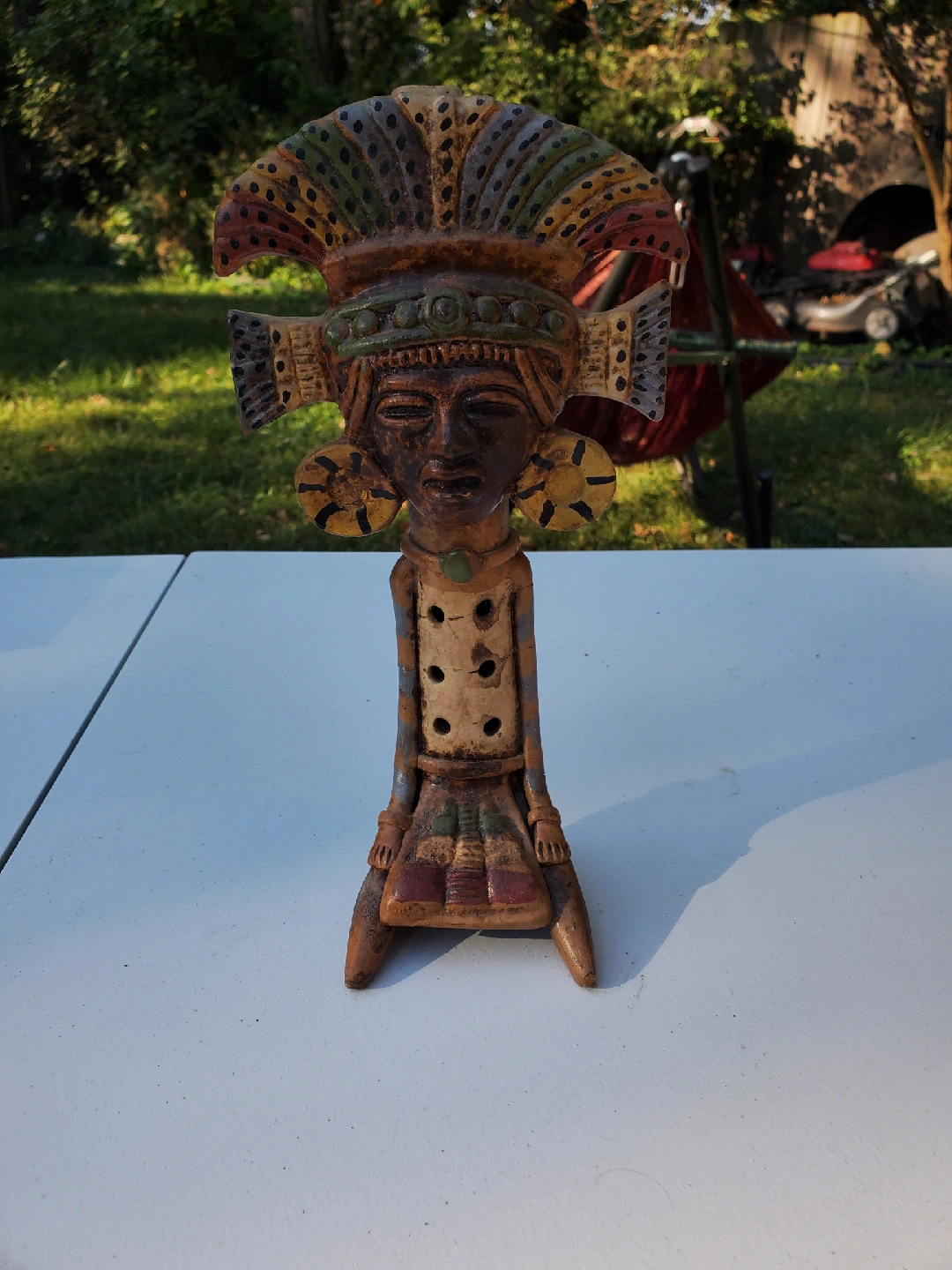 60This is a vintage hand carved Aztec clay flute. It shows signs of wear and tear, has a few cracks, see photos.