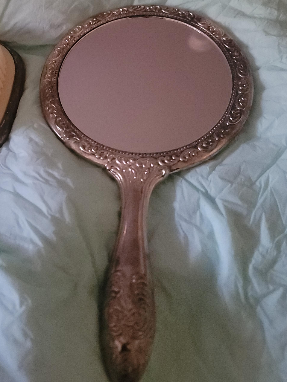 60Selling a vintage handheld mirror. It has a lovely ornate design on the handle and around the mirror itself. It's in good condition and ready for a new home!