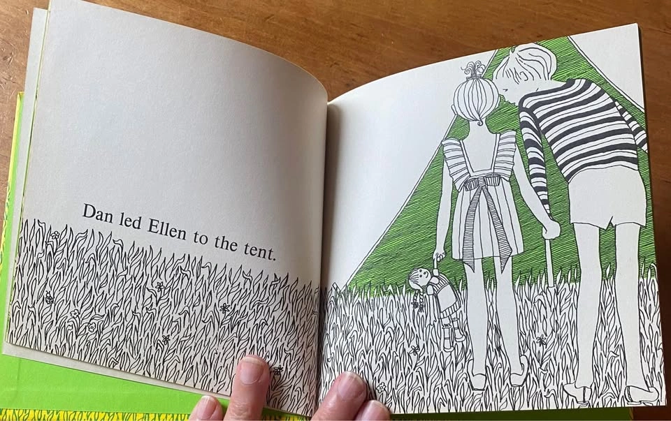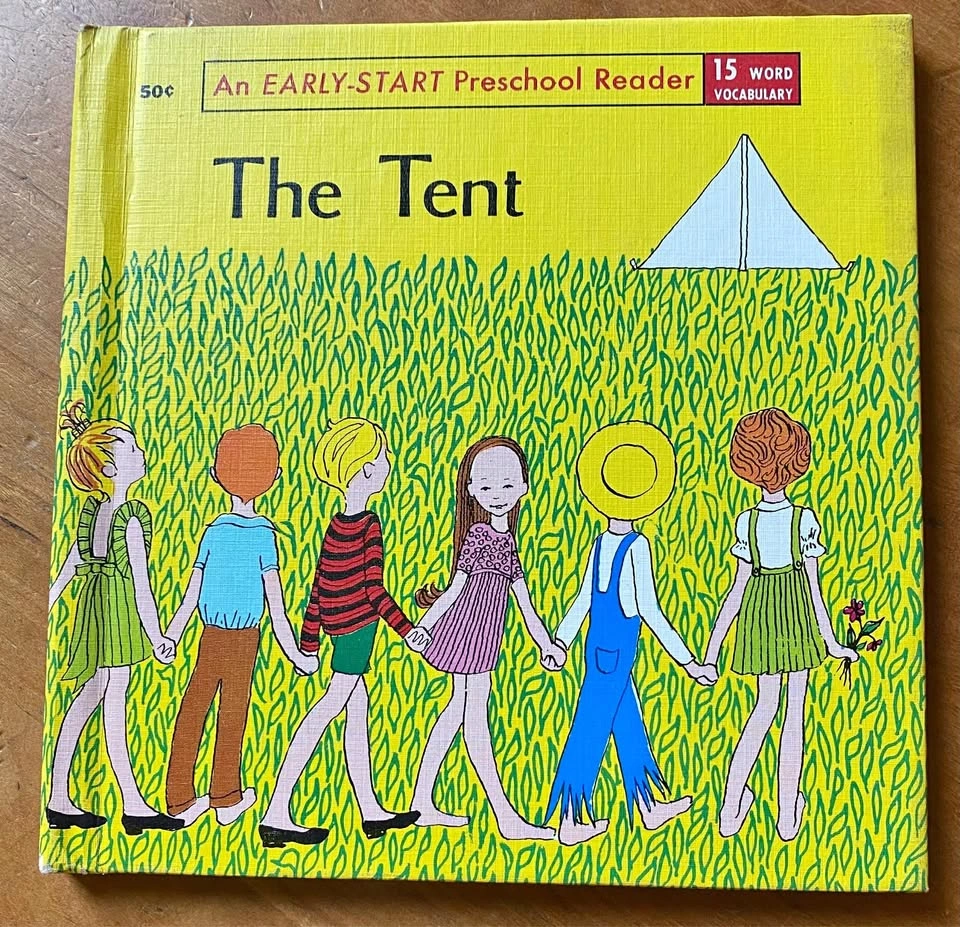 Vintage hardcover book titled "The Tent," published in 1965 as an early preschool reader by Wonder Books. Illustrated by Nance Holman and authored by Dorothy Z Seymour, this first edition book is a charming children's story set in North America. Printed in the United States by Grosset & Dunlap. Pages are clean with no writing.