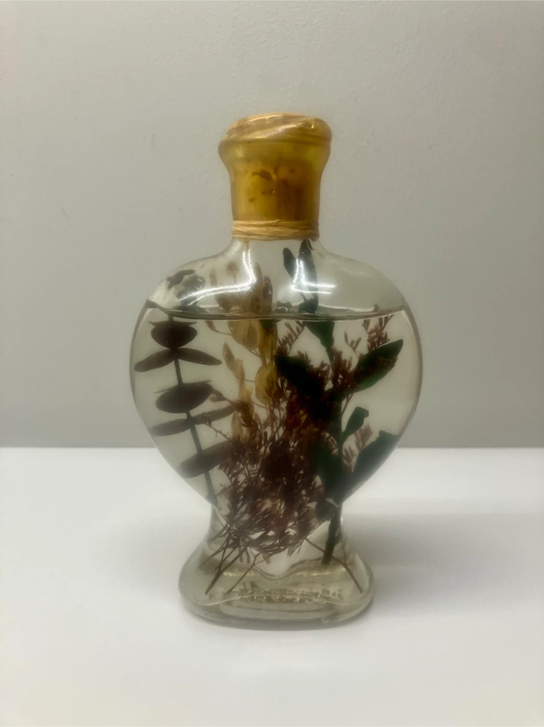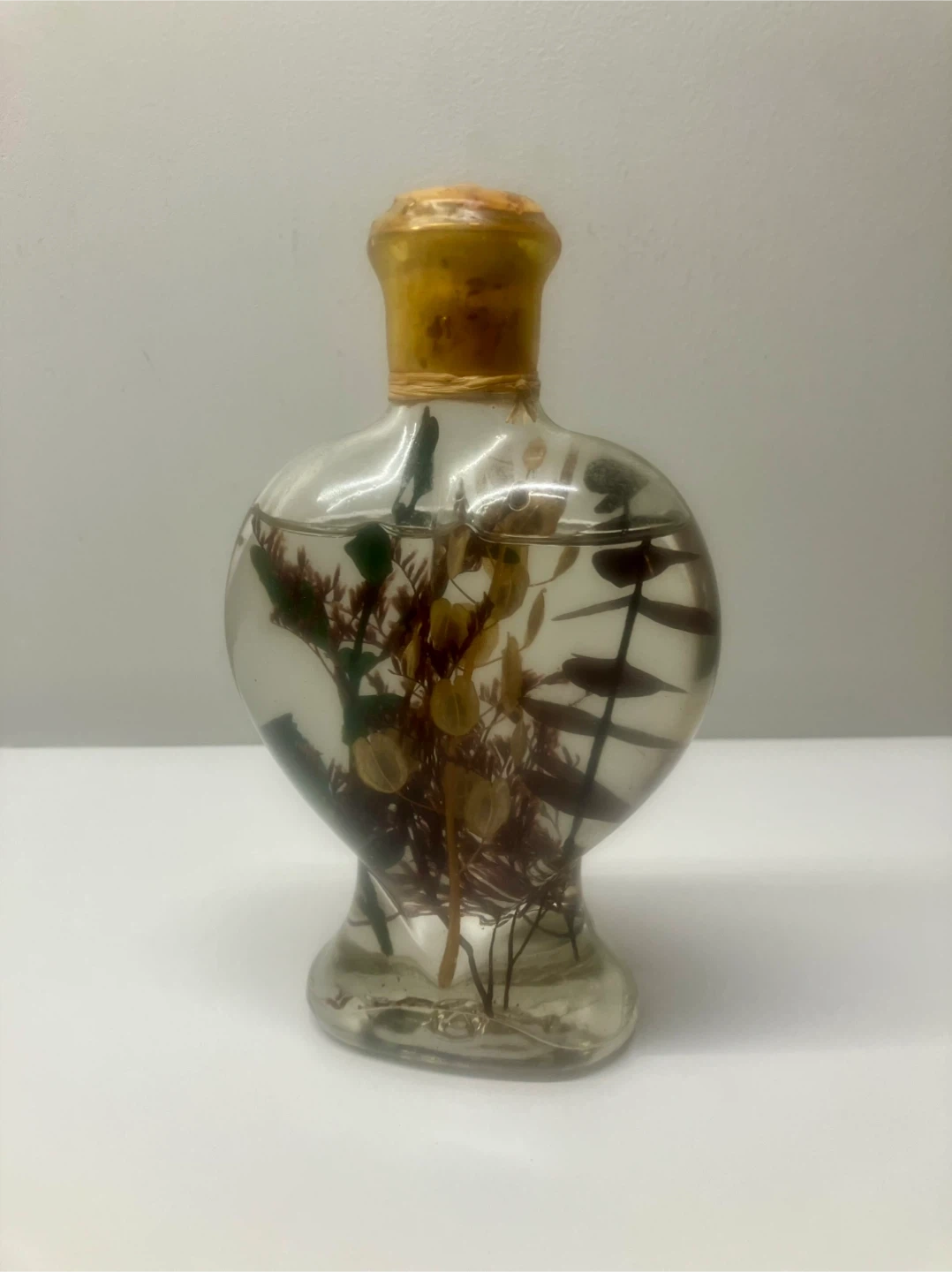 Vintage Heart Shaped Botanical Decor Bottle - 6.5” x 4”
