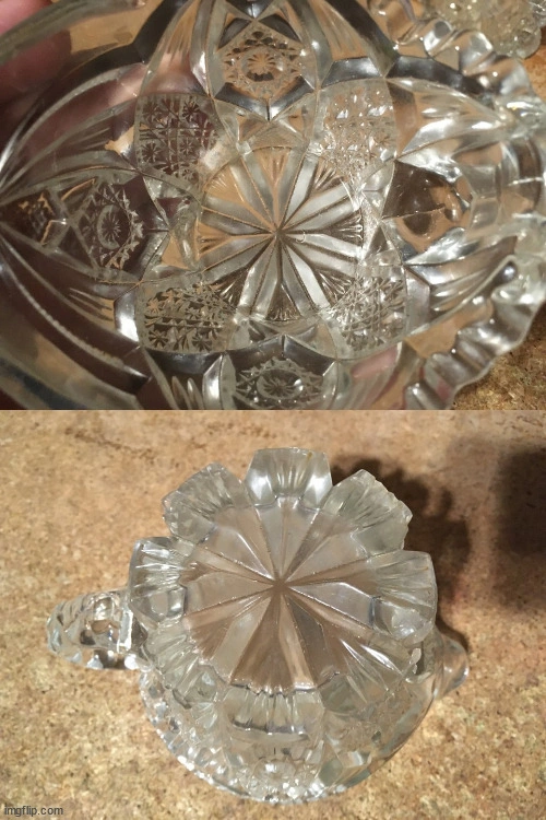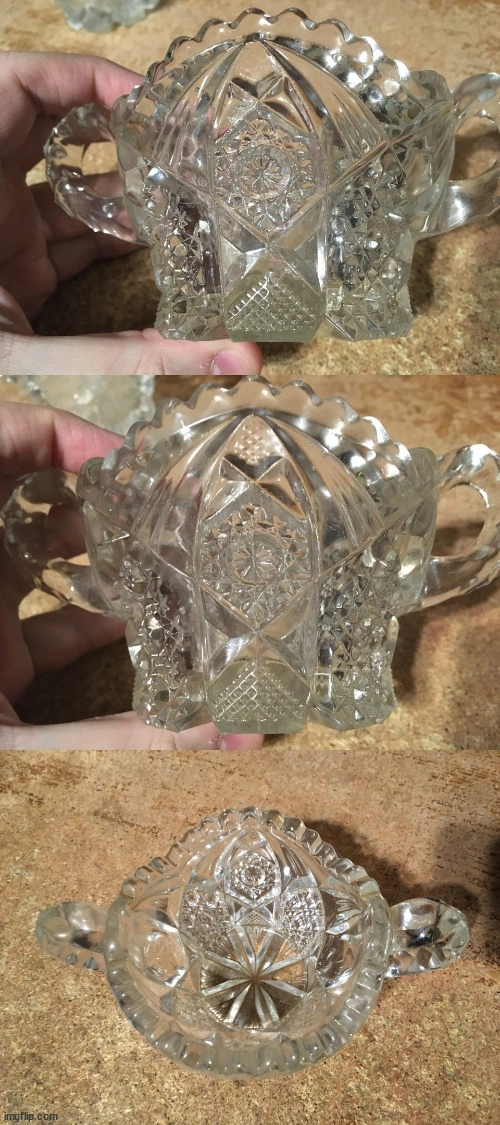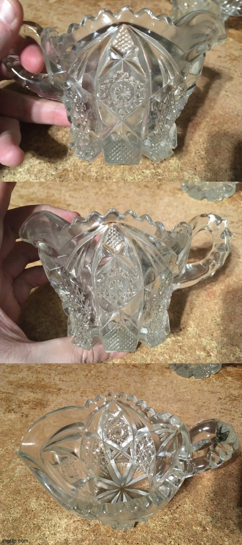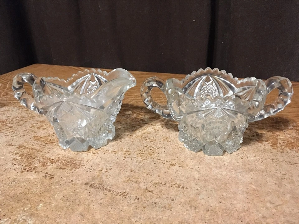 214This is a lovely vintage clear glass creamer and sugar bowl set. The intricate design and details make it a beautiful addition to any table setting. Perfect for serving cream and sugar with your coffee or tea. very good condition. pick up at house