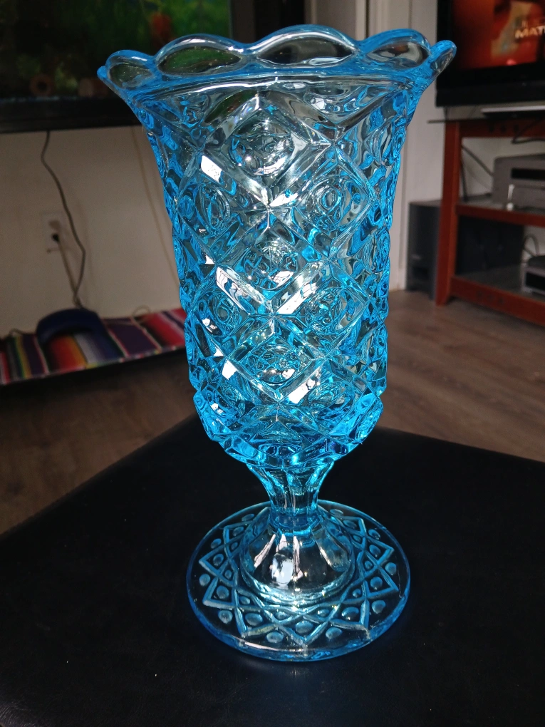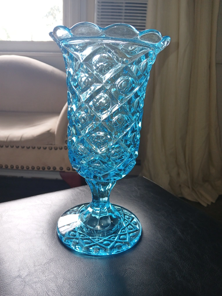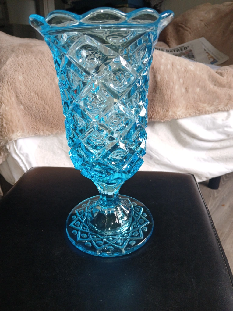Beautiful vintage Indiana Glass Diamond Point vase in a lovely shade of blue. It's in great condition and would make a wonderful addition to any home decor