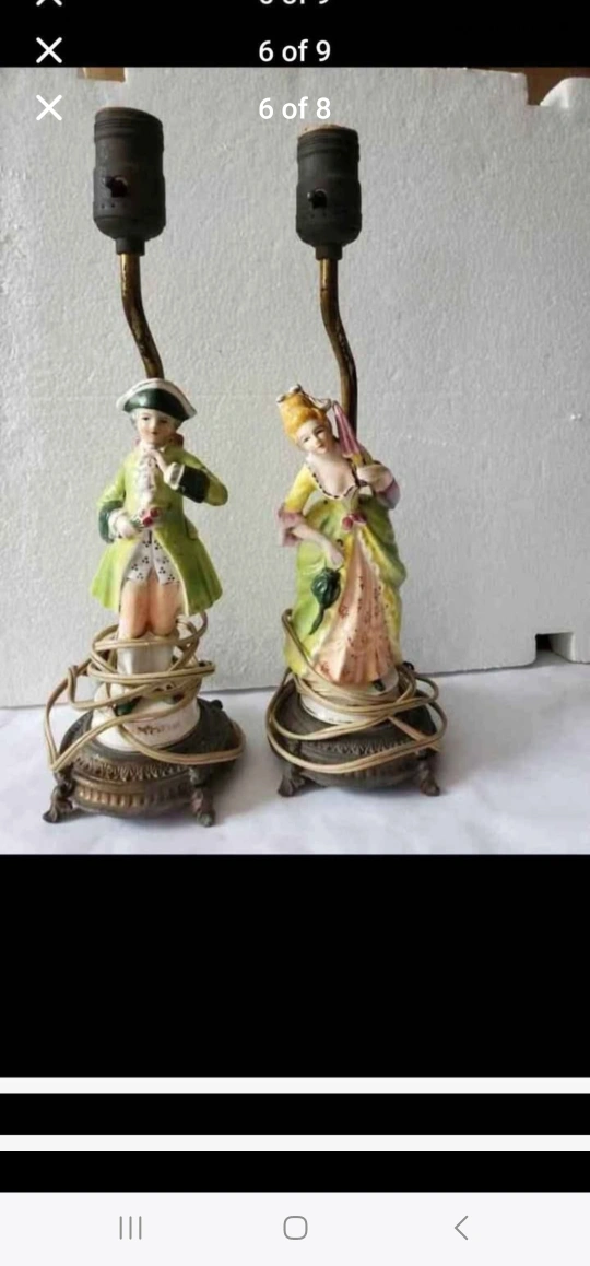 97Two antique table lamps. Porcelain figurines of a man and woman in period dress. Brass accents. perfect, new condition $150 BUYER HAS TO PICK UP CASH ONLY