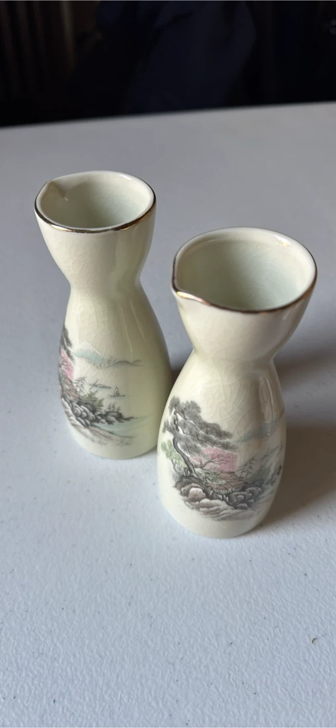 193Selling a vintage sake set made in Japan. These are in great condition and would be a lovely addition to your home bar or collection! They have a beautiful landscape design.