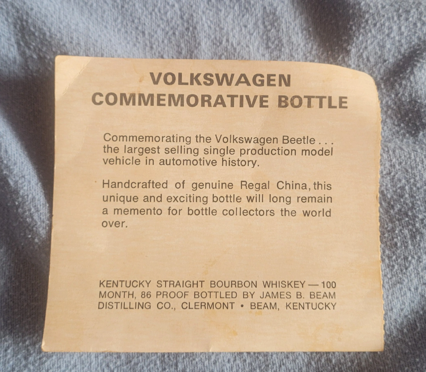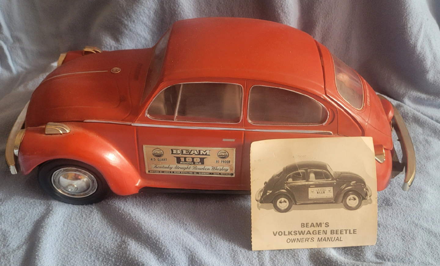 Selling a vintage Jim Beam Volkswagen Beetle decanter. It's a cool piece for collectors!