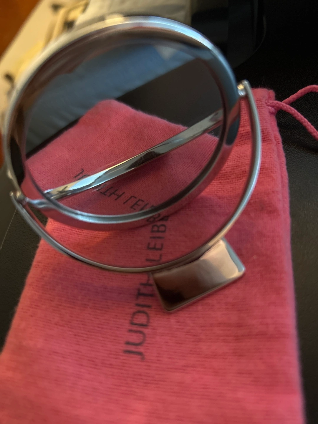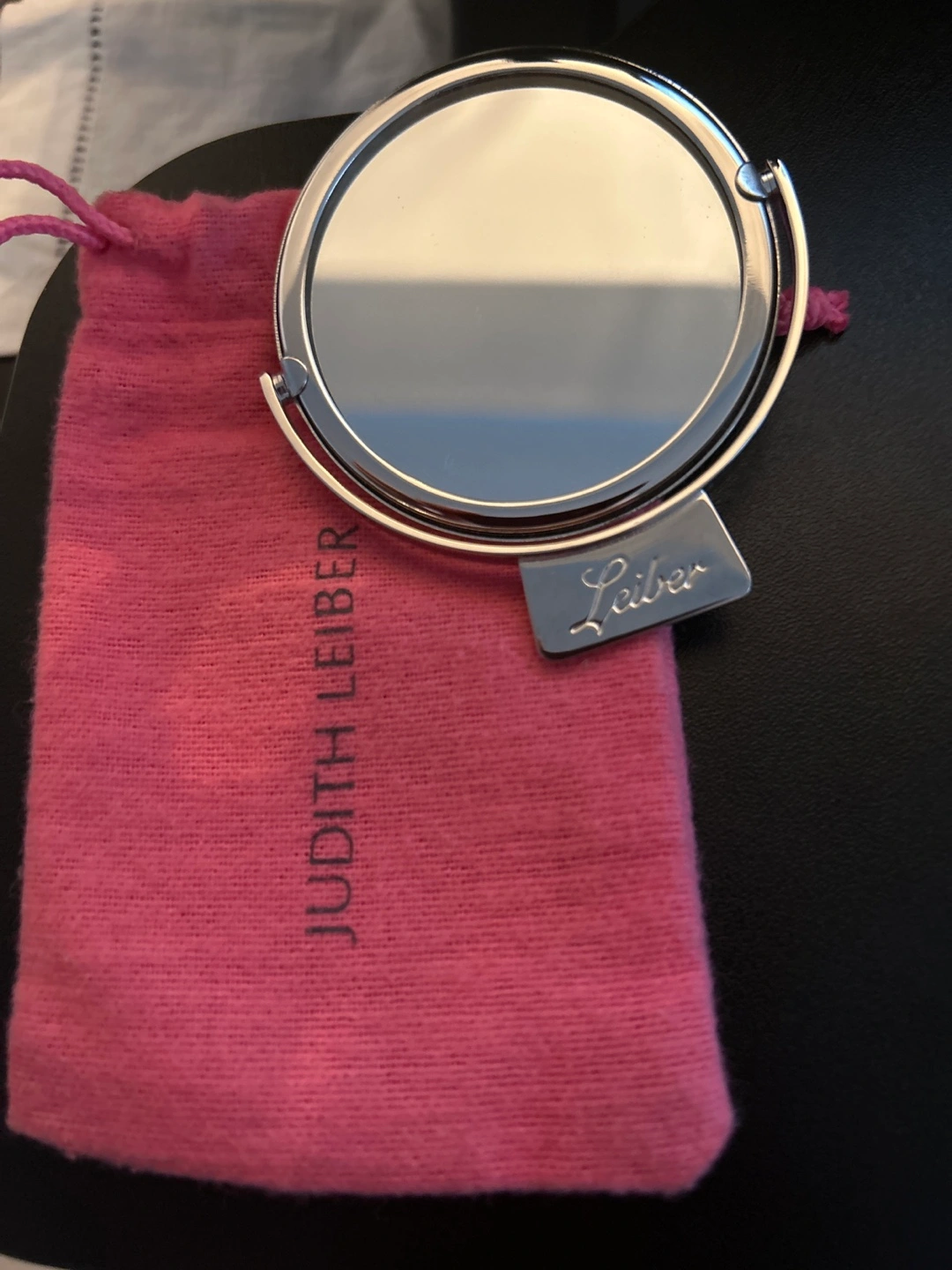 62Vintage silver tone travel mirror made in Italy in great used condition comes with original pouch. Perfect for travel or everyday use.