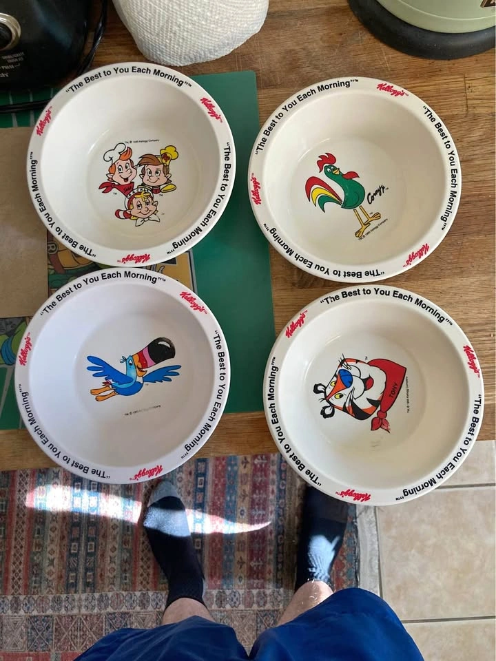 65Lot of 4 vintage kelloggs cereal bowls from 1995 with iconic kelloggs mascots. Looking to sell as a collection but will do 5 apiece. Available for pickup in portage park.