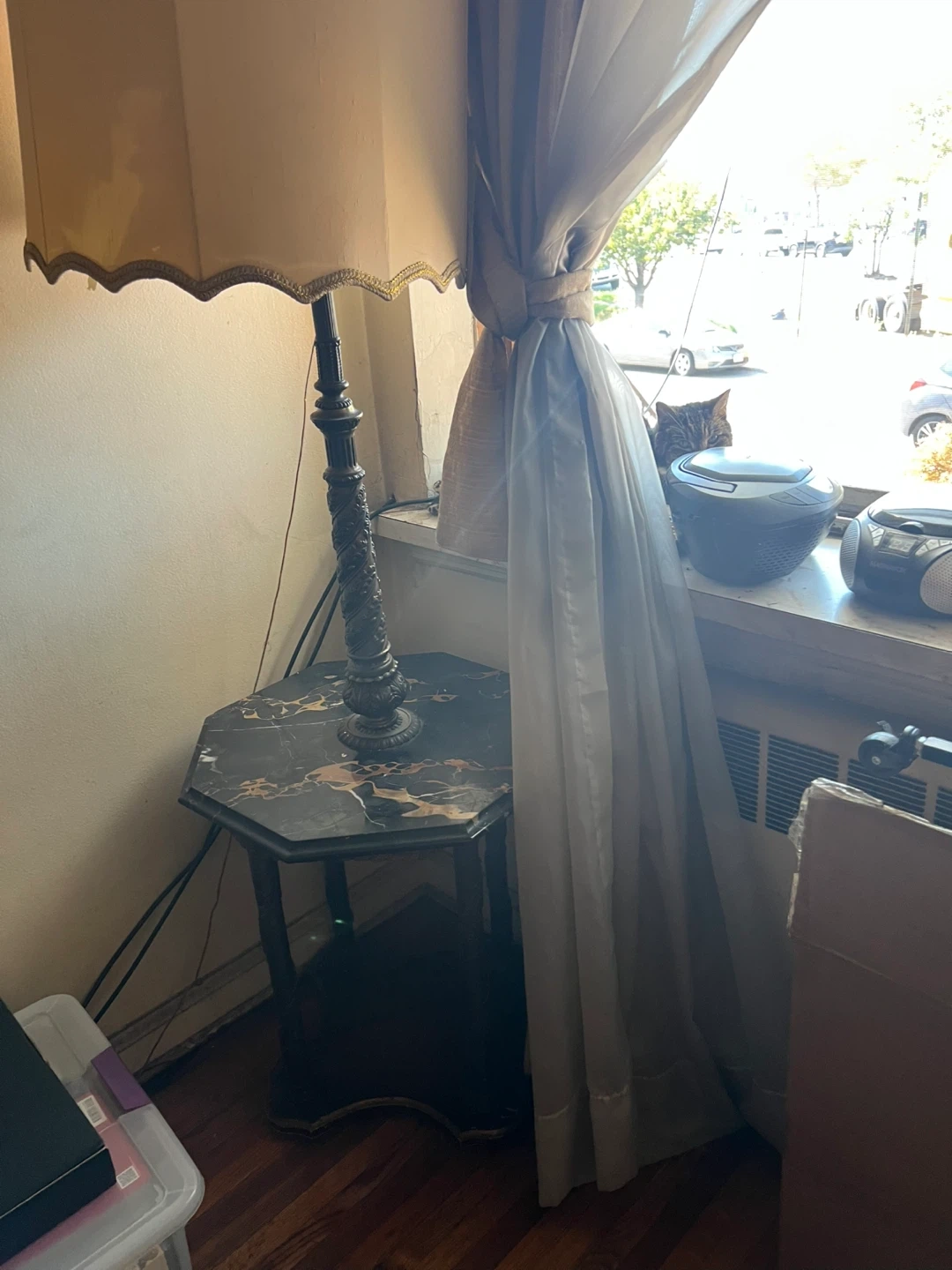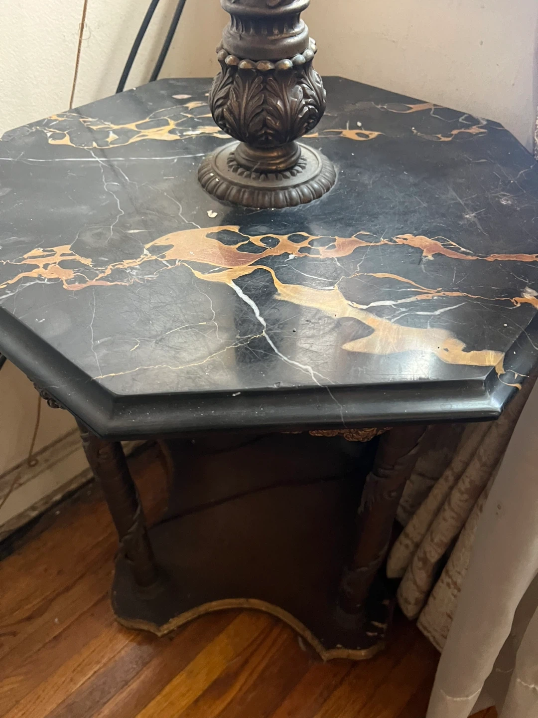 Selling a vintage lamp with a fabric shade and a marble top table. They both have a classic look. The table has a unique octagonal shape. Great for adding a touch of elegance to your home!