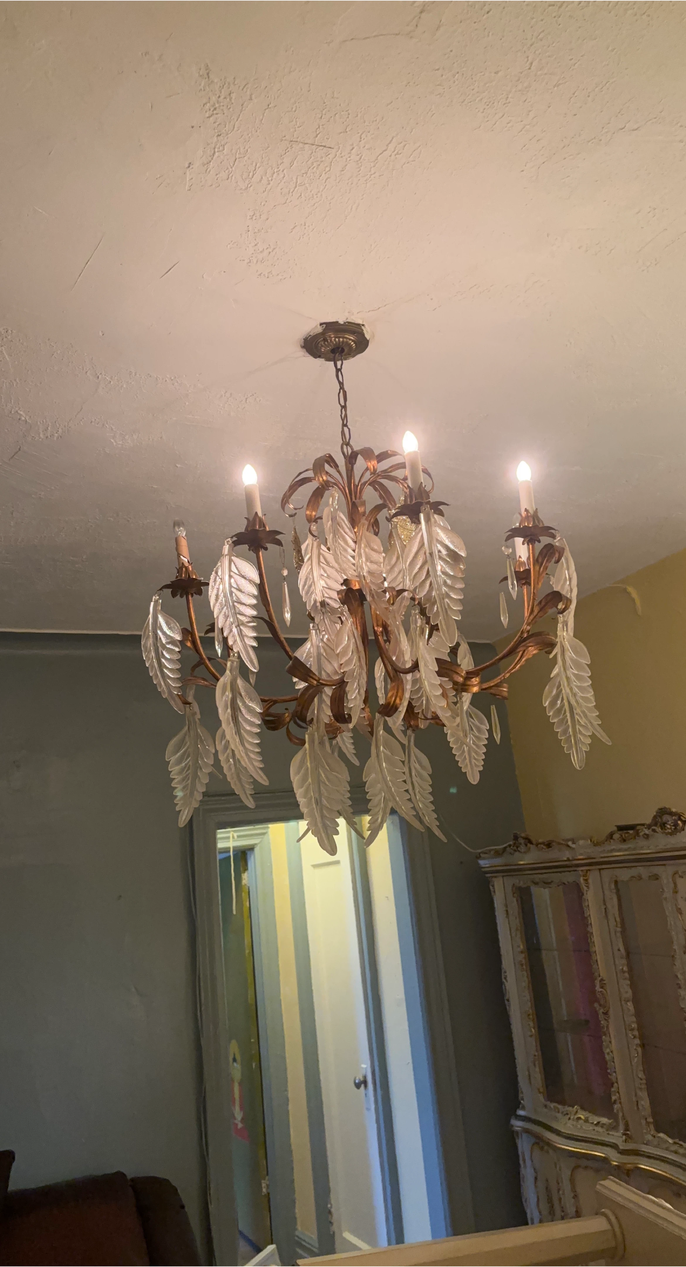 65Selling a beautiful vintage chandelier with leaf-shaped glass accents. It adds a touch of elegance to any room!