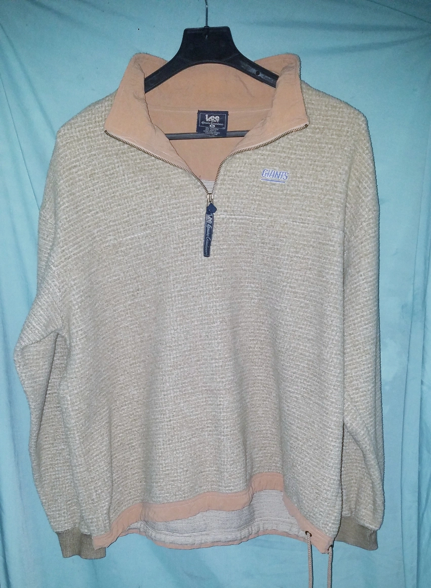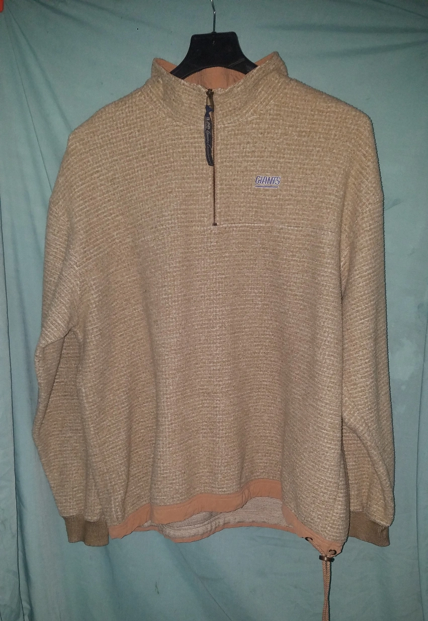 Worn Maybe Once... It's Clean with No Rips Tears or Stains Features a Zip Up Closure and a Cord Sinchable Waist Color Matched Biege Denim Trim Mens Size XL Please See Pics... Check Out My Page For More Great Items The Vintage Lee NY Giants Fleece Zip Up Pullover is a classic piece of men's clothing that combines style and comfort. Made from cozy fleece fabric with beige denim trim, this sweatshirt features a zip closure and XL size, perfect for a regular fit. The pullover design and iconic NY Giants branding add a touch of nostalgia to your activewear collection, making it a versatile and stylish addition to any man's wardrobe.