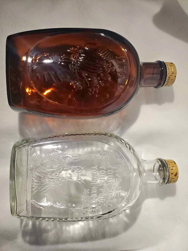 Set of 2 vintage Log Cabin Syrup bottles, One Bicentennial and one Statue of Liberty