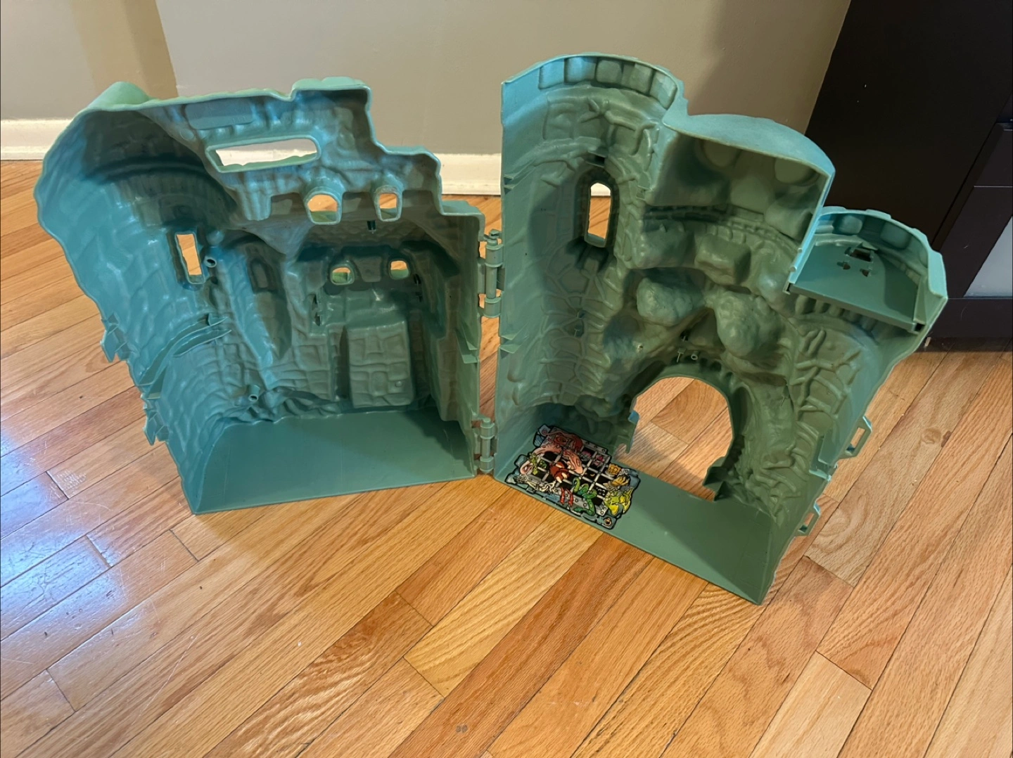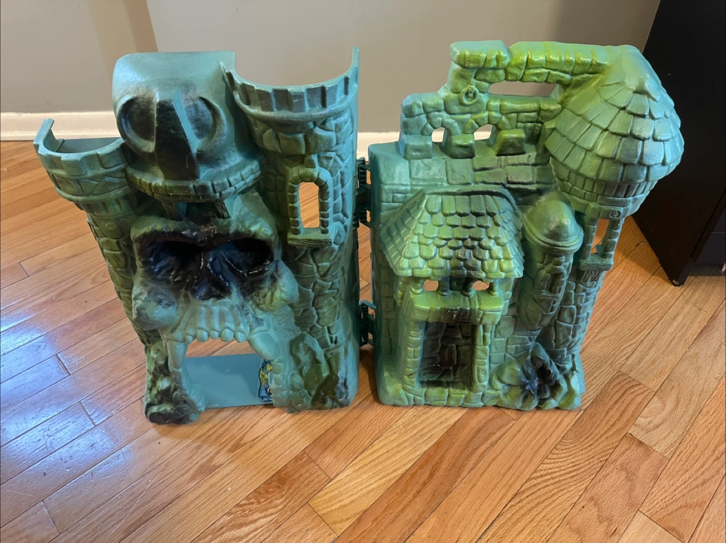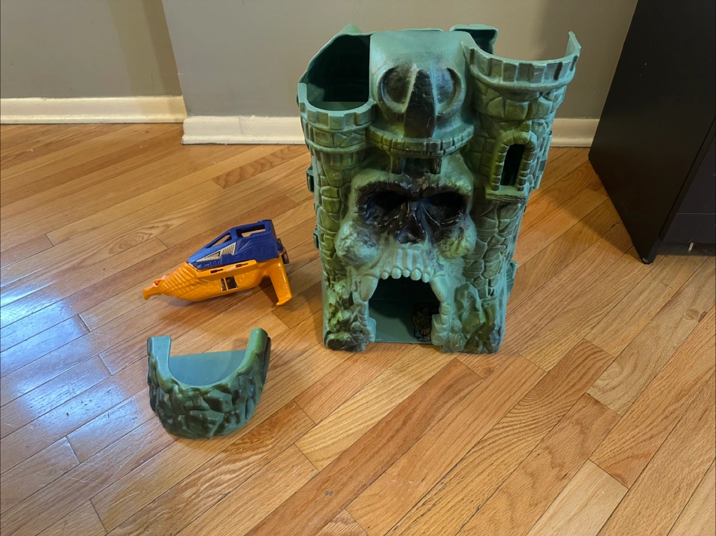MOTU vintage Castle Grayskull and Zoar. Includes the main castle structure with hinges in great condition. Sold as is. Some wear and tear expected due to age.