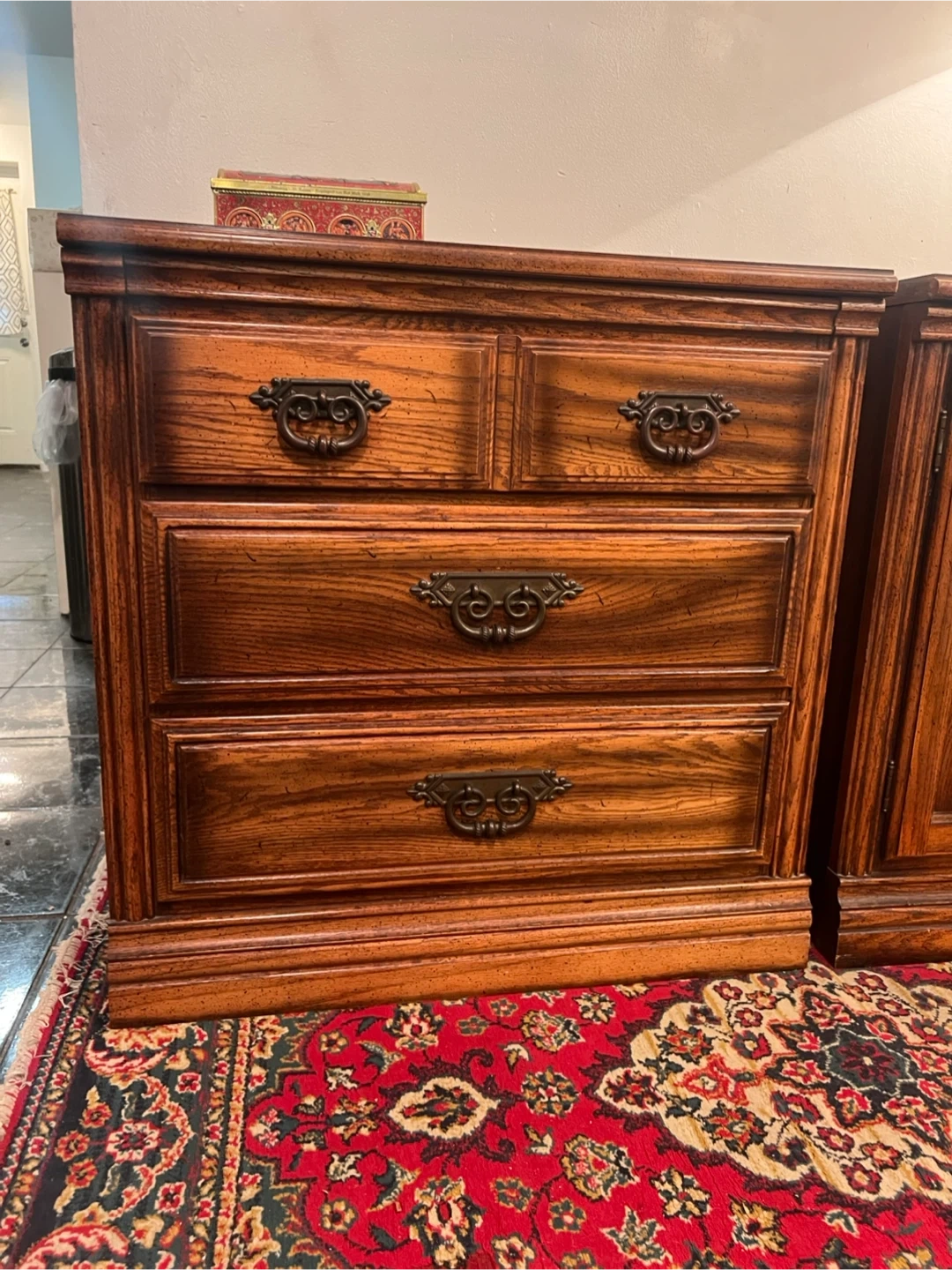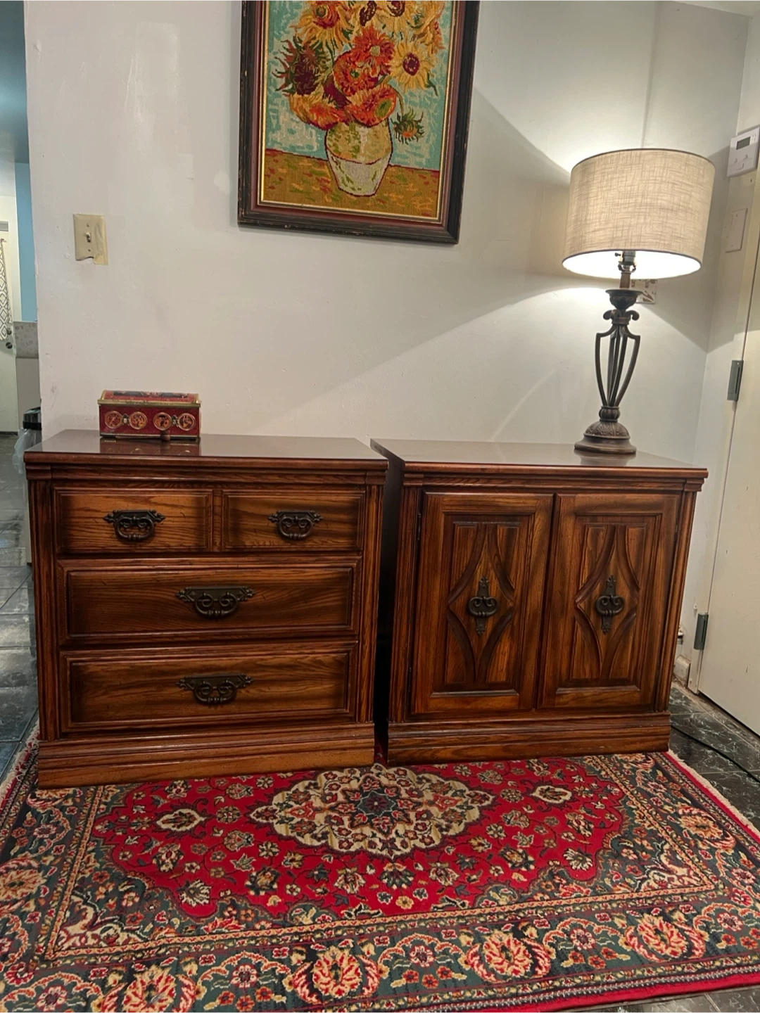 415Selling matching small three-drawers dresses and a cabinet. These are vintage and built well. Functional and sturdy. Cosmetic is great but has minor wear, not a big deal. Drawers and cabin doors open and close smoothly. Measurement for each one of them - 18”x30”x30.25” (DxWxH) Prefer selling together but can be sold separately. Price for both is $230. Delivery is available for extra fee. Fee depends upon your location. Cash, Venmo, Zelle, CashApp or PayPal are acceptable.