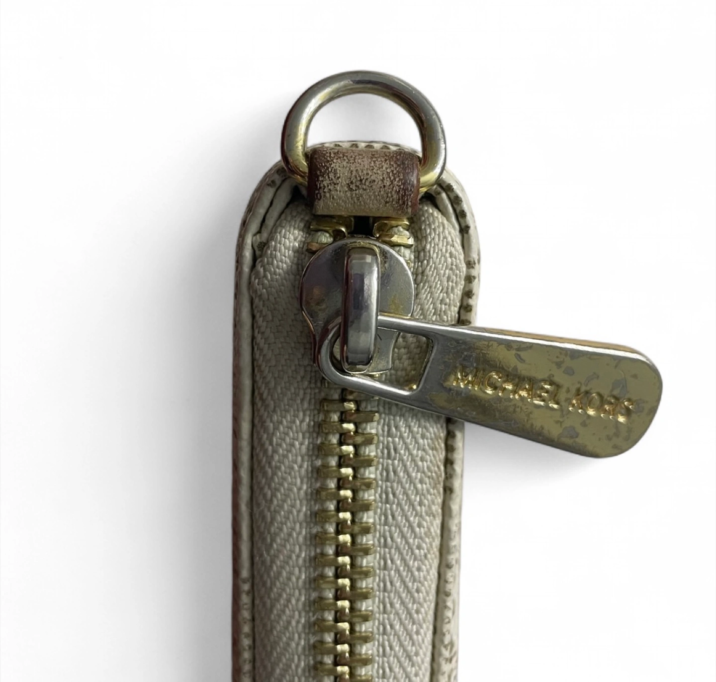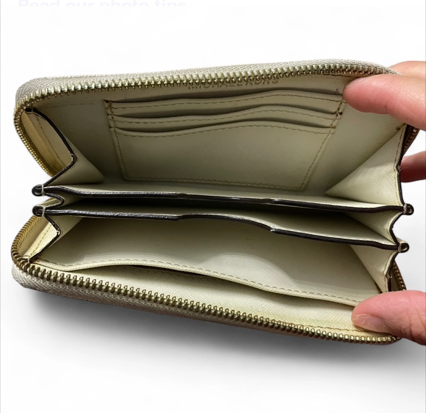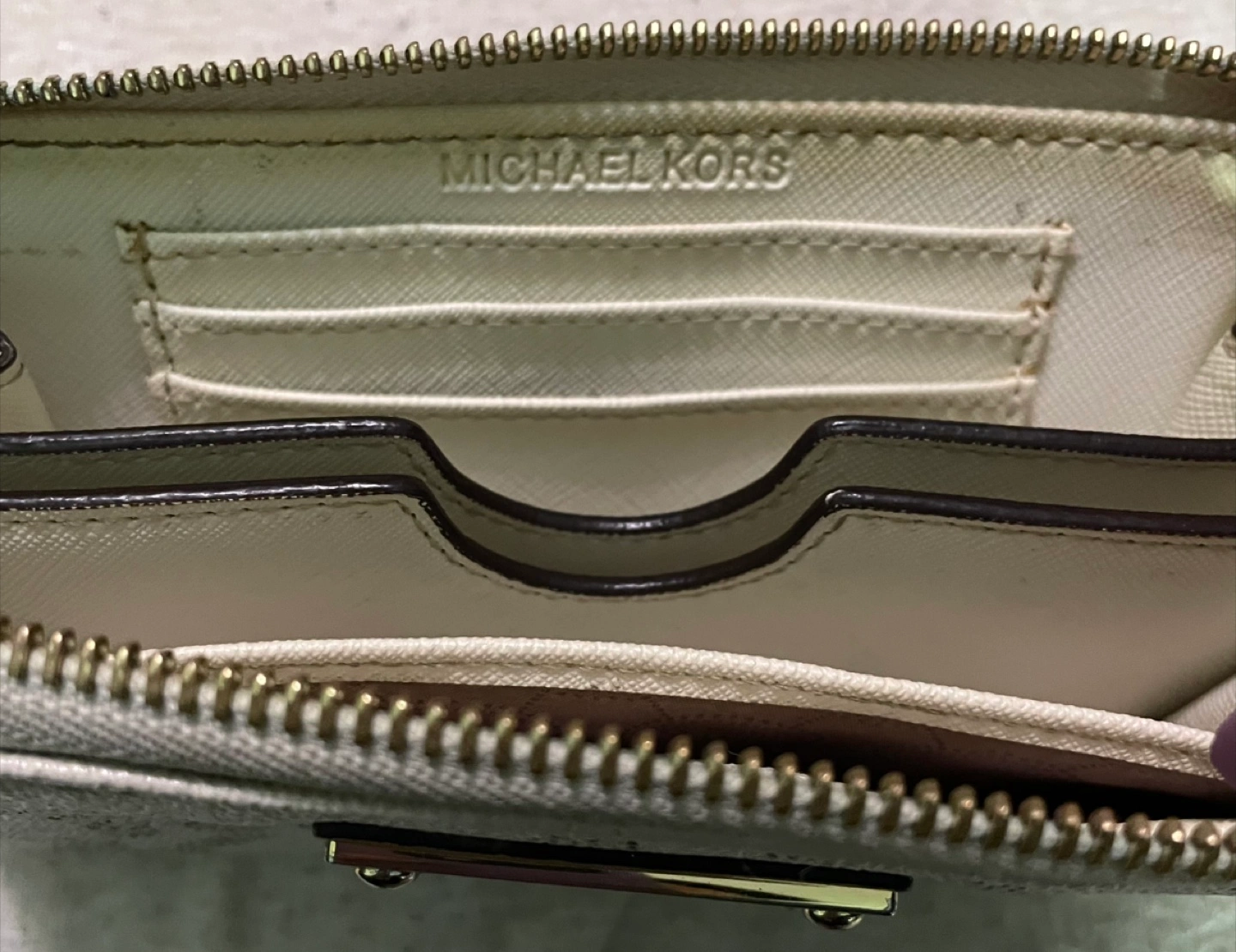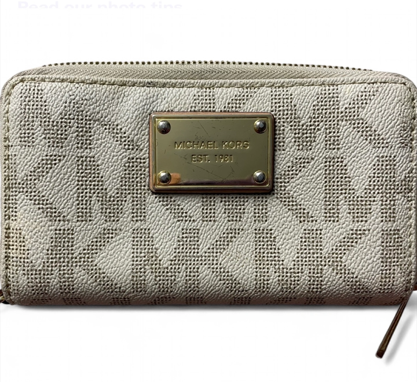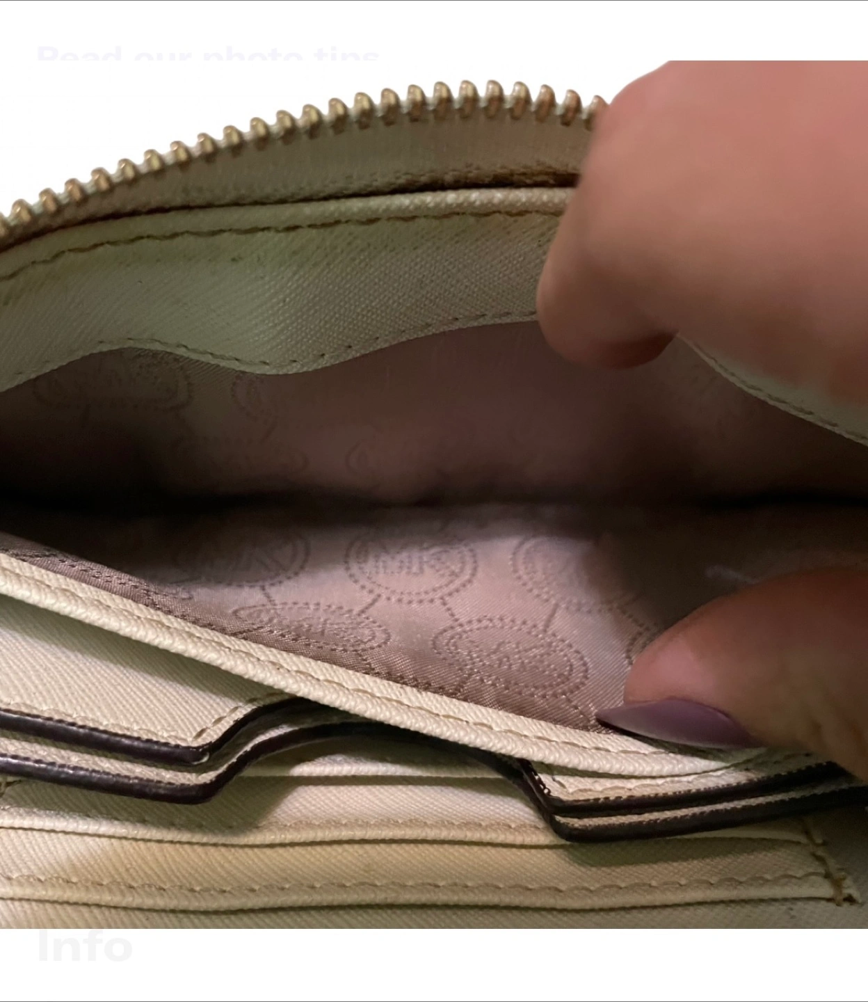 Selling a Vintage Michael Kors wristlet. It’s in beige and has a ring to put a chain to hold it!