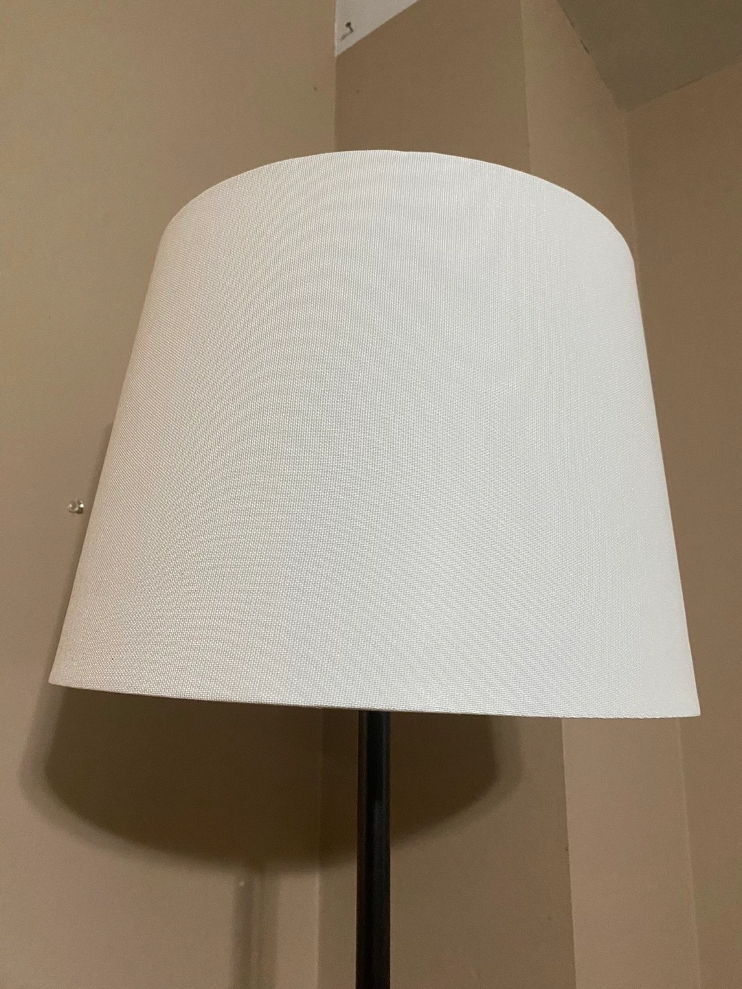 15Vintage Mid Century Modern Fiberglass Lamp Shade. It has a few small marks, but overall good condition. 16" across and 10" tall.