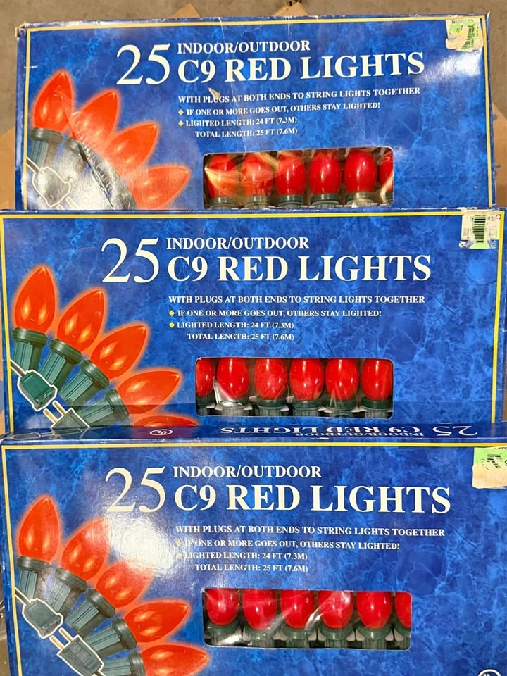 Buy & SellVintage New Christmas C9 Red Lights 25ft Lot of 3Vintage New Christmas C9 Red Lights 25ft Lot of 3$26Vintage Christmas Indoor/Outdoor C9 Red Lights. 25ft_ Lot of 3. Cash on pickup, Midway Airport Area0 chatsΒ·0 favoritesΒ·14 viewsSELLERTiffanyClearing242 reviewsWHERE TO MEETCheck Location