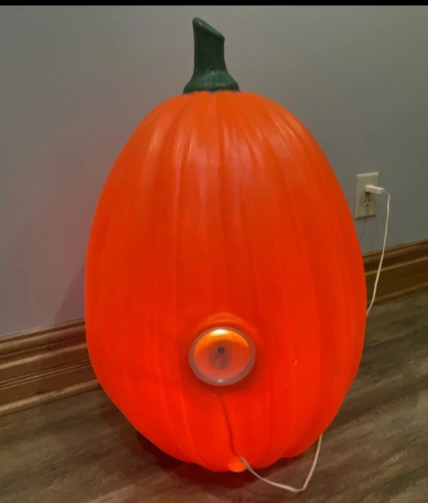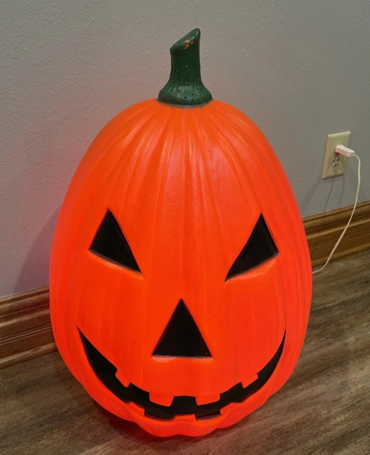 This is a Jumbo blow mold pumpkin decoration, perfect for Halloween! It's in great shape and ready to add some spooky fun to your home