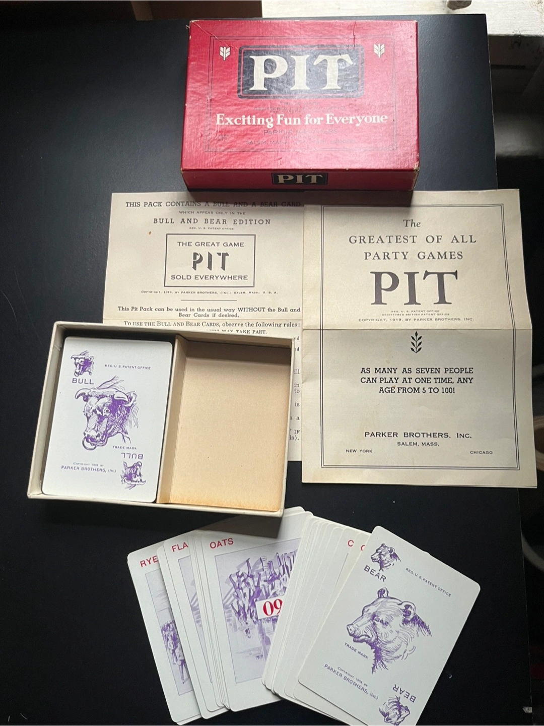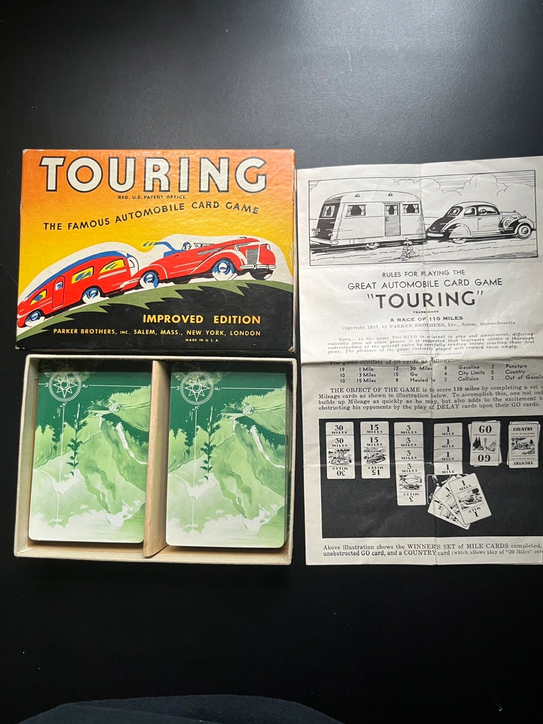 Selling two vintage card games by Parker Brothers: Pit (Bull and Bear Edition) and Touring (The Famous Automobile Card Game). Both games come with their original boxes and instructions. Great for collectors or anyone who enjoys classic card games!