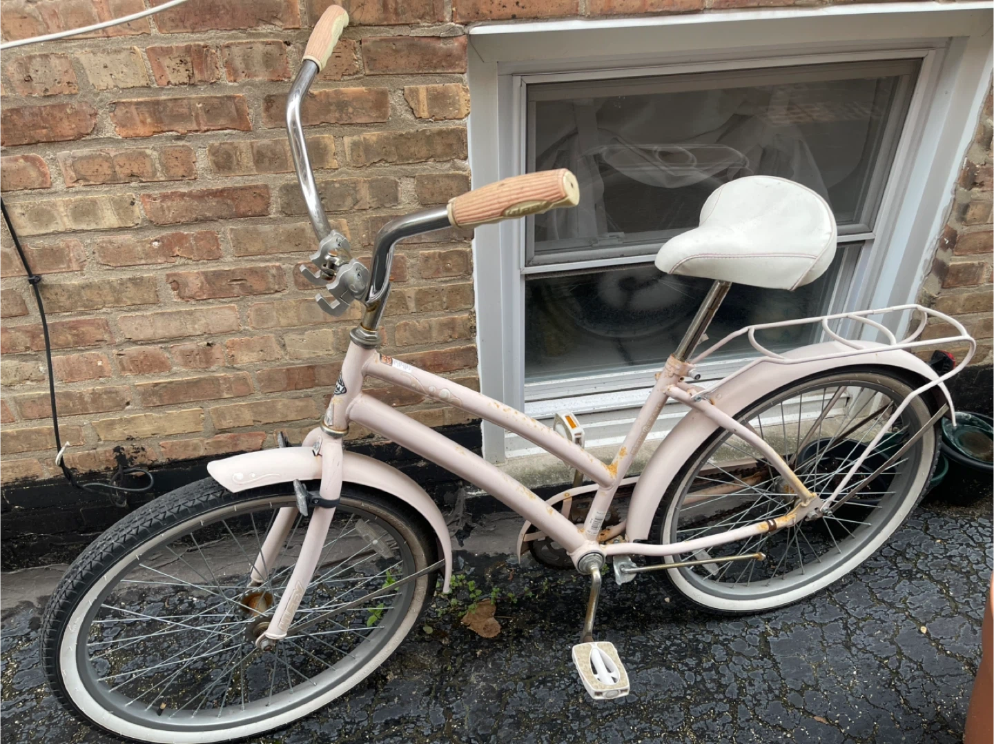 Selling a vintage pink beach cruiser bike. It has a white seat and cream colored handles. Perfect for leisurely rides around the neighborhood!
