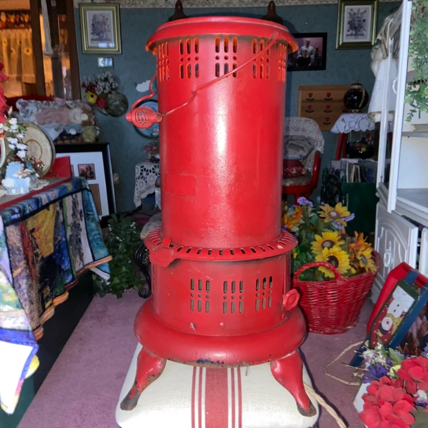 Selling a vintage red decorative mock space heater. 2ft high, does not heat, decor only. Has a flickering light inside which is removable. Electric with extra long cord & push button. We do have 2 of them. The price listed is per each item.