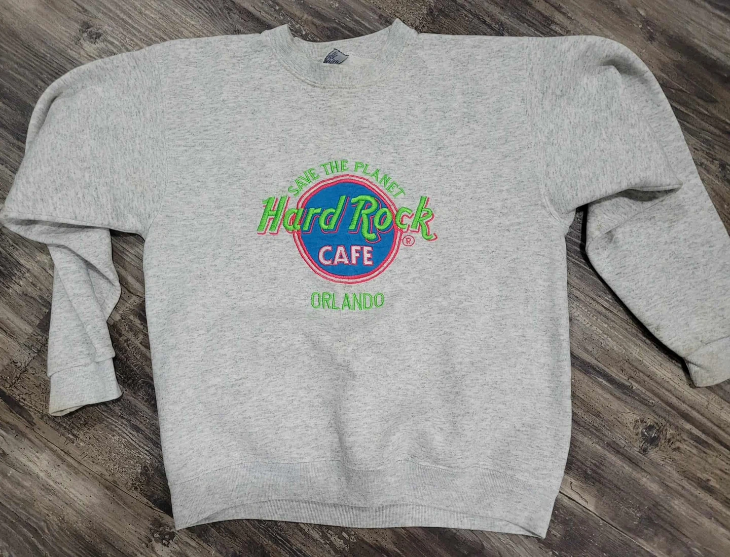 Selling a Hard Rock Cafe Orlando sweatshirt. It's a size M and made by Santee. Please note that there is small stain on the sleeve a cool piece!!!