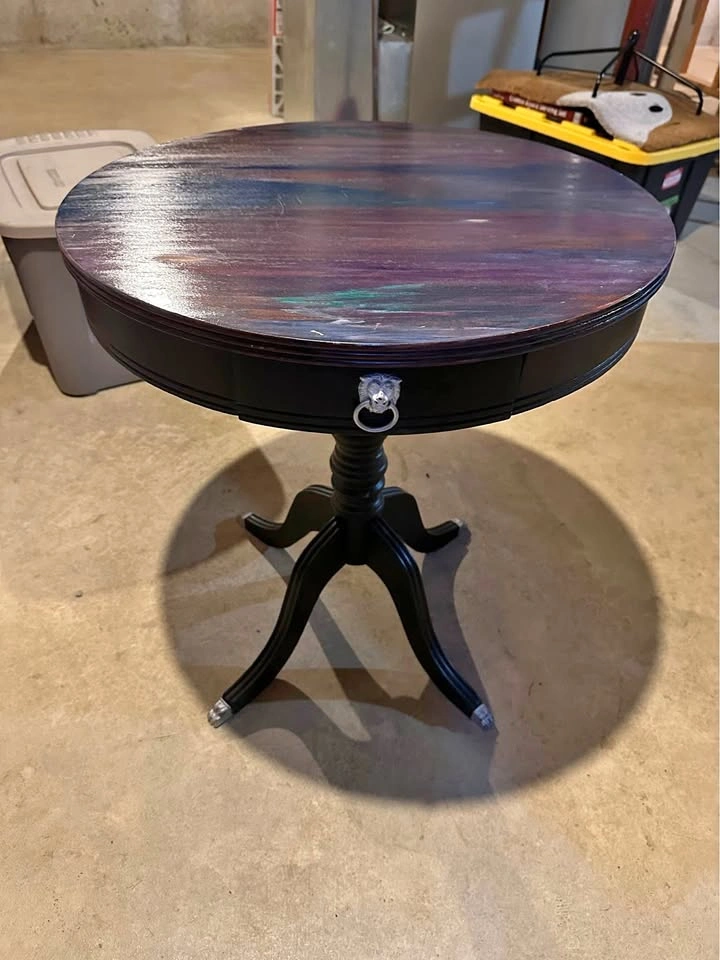 Glass table with gorgeous printed design wood stand & 4 chairs