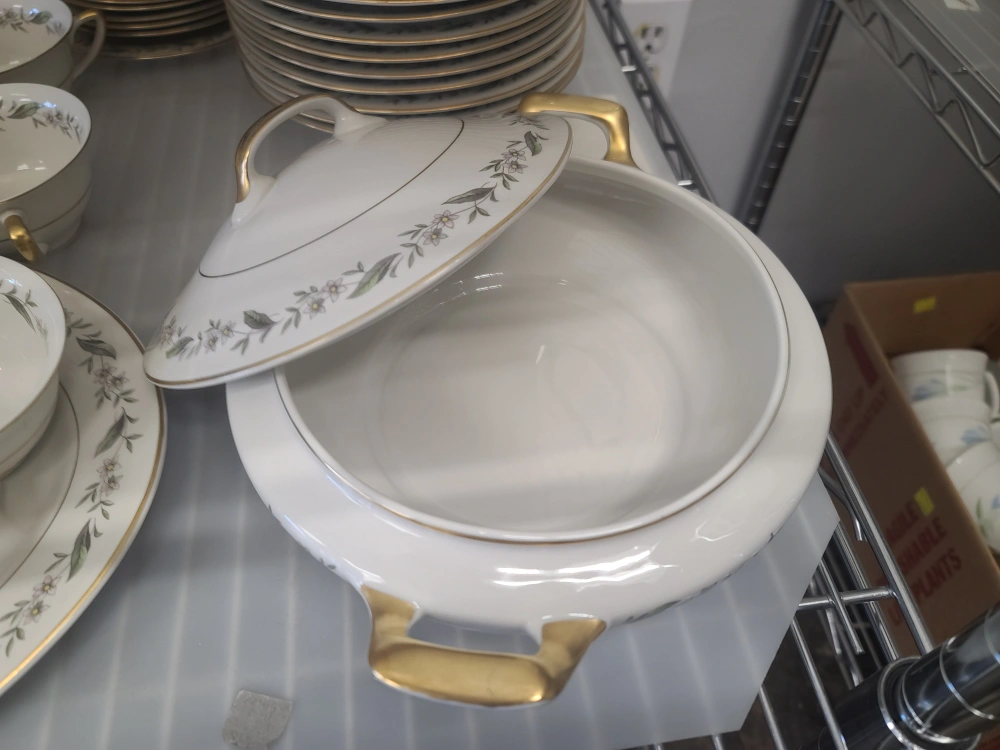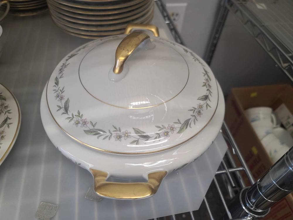 26Selling a beautiful vintage Royal jackson Mognolia cogue china set! The set features a delicate floral design with gold trim. It includes plates, bowls, cups, and serving dishes. Perfect for adding a touch of elegance to your dining experience