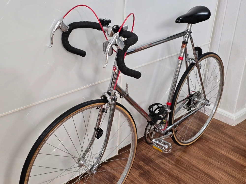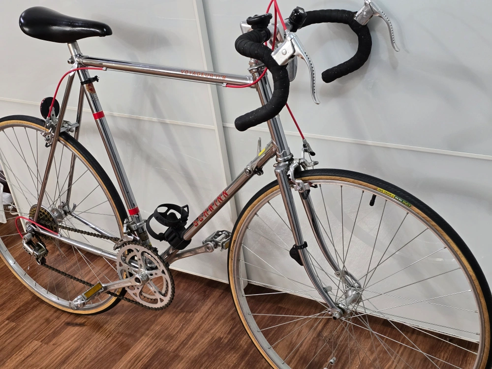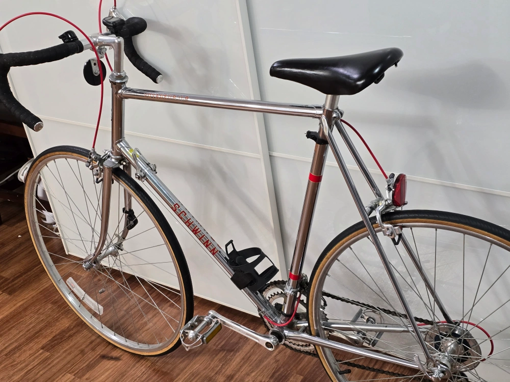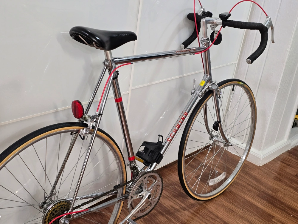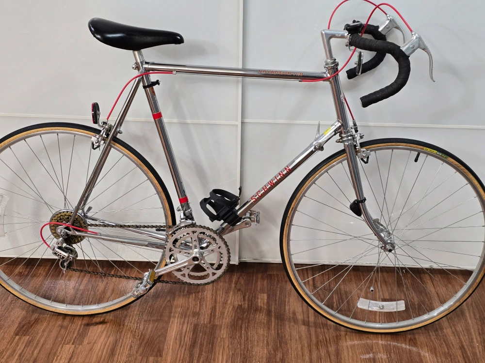 29Vintage Schwinn Voyageur road bike. Chrome frame with black handlebar tape and saddle. Includes original water bottle cage.