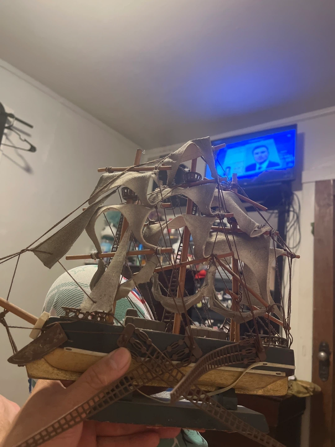Selling a vintage ship model, perfect for display! It has a classic look with detailed sails and rigging. It would be a great addition to any nautical collection or as a decorative piece in your home