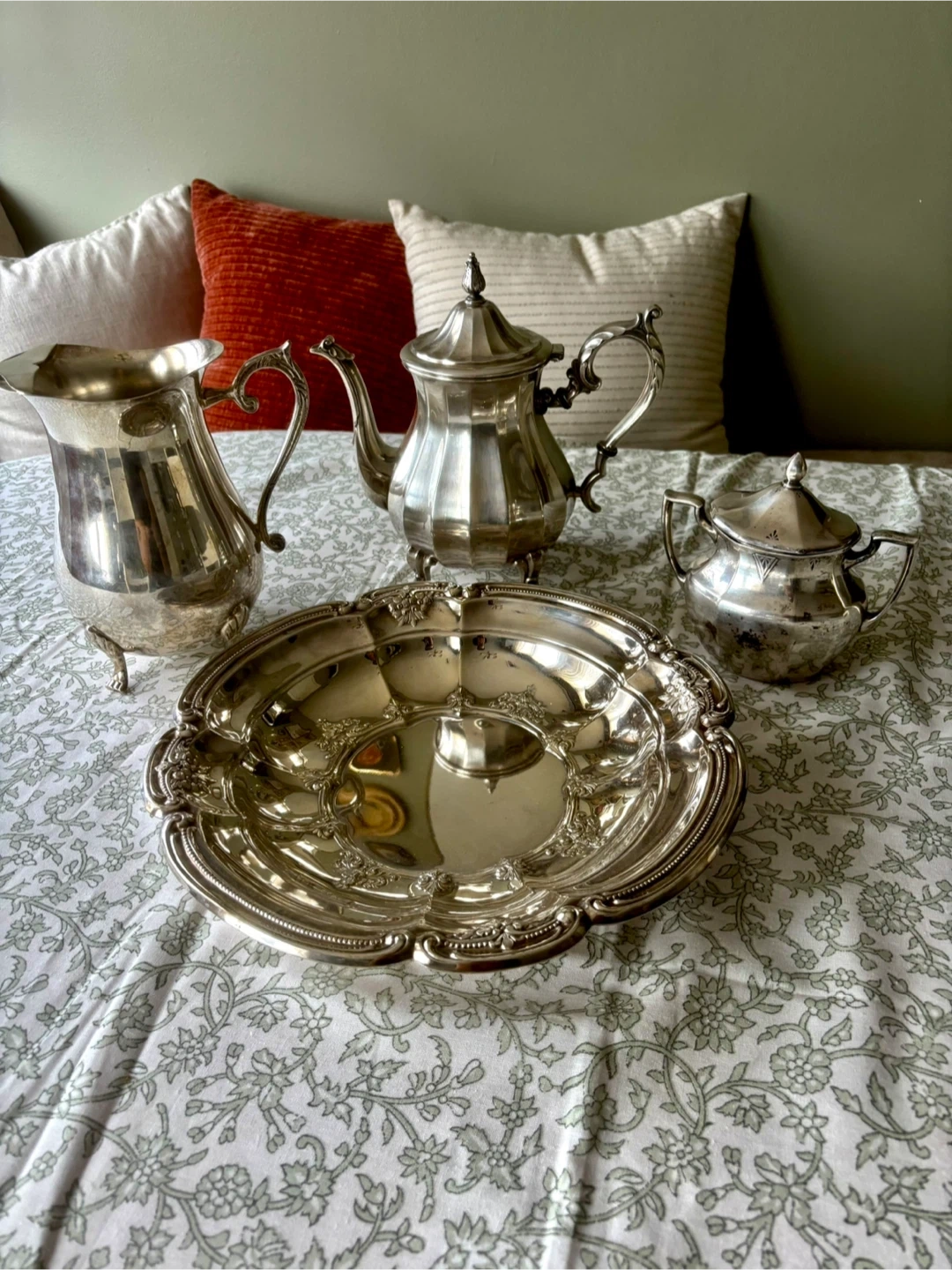 4 piece vintage collection of silverware, polished and cleaned as much as possible, polishing paste included free