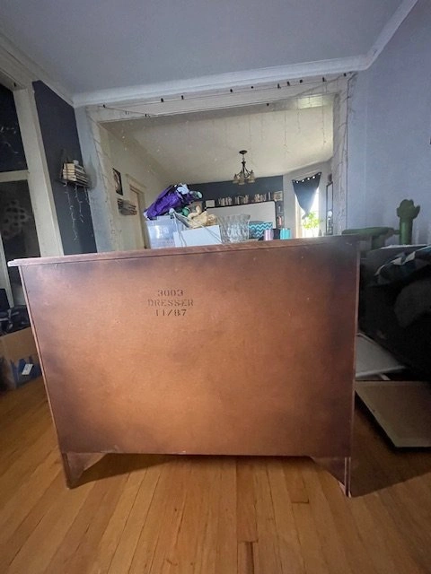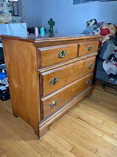 84Measurements: 40.5" Long X 18.5" Wide X 32.5" Tall *MUST PICKUP AND TRANSPORT no delivery option available. Located in Logan Square (California & Armitage) Antique vintage hand crafted wooden dresser passed down from grandpa. We need to downsize for a move and will have to part ways with this piece and the matching 4 drawer chest in the last photo. We can do a deal if picking up both pieces together. *** Please Note: One handle is missing on the left side of the middle drawer. (See detail in pics)