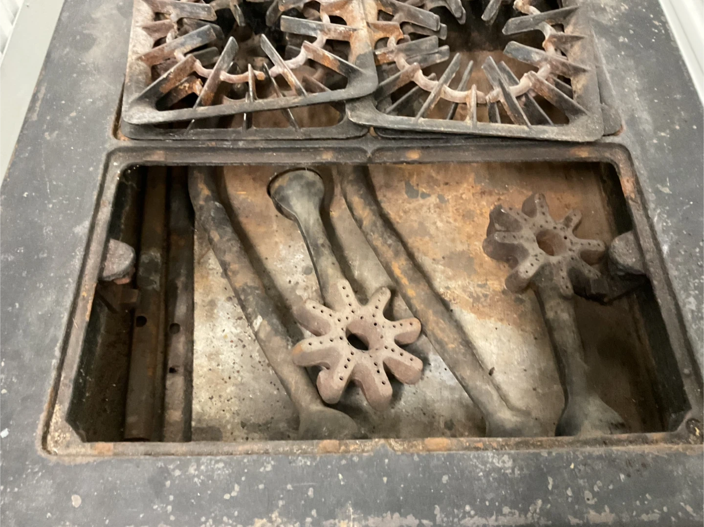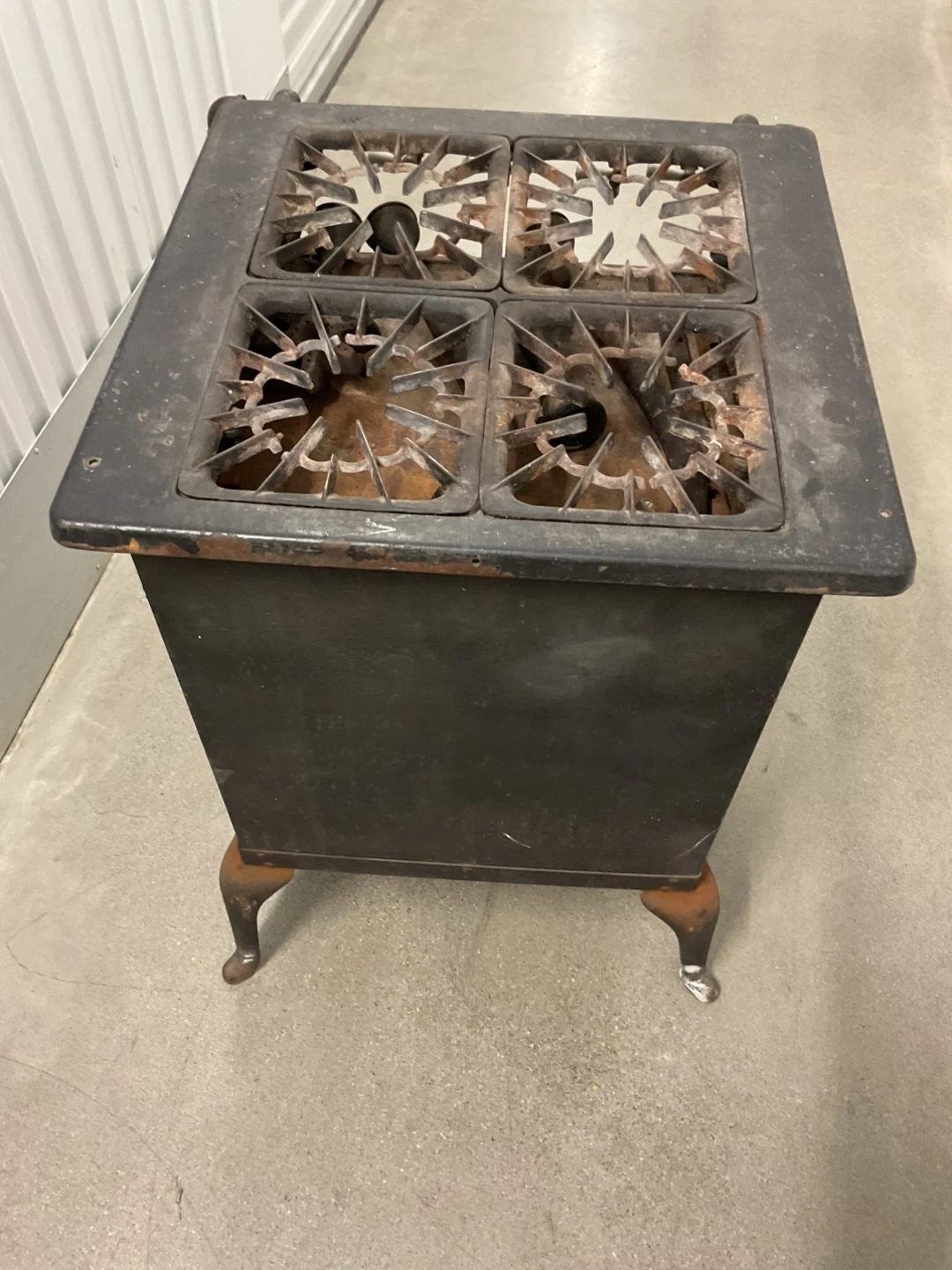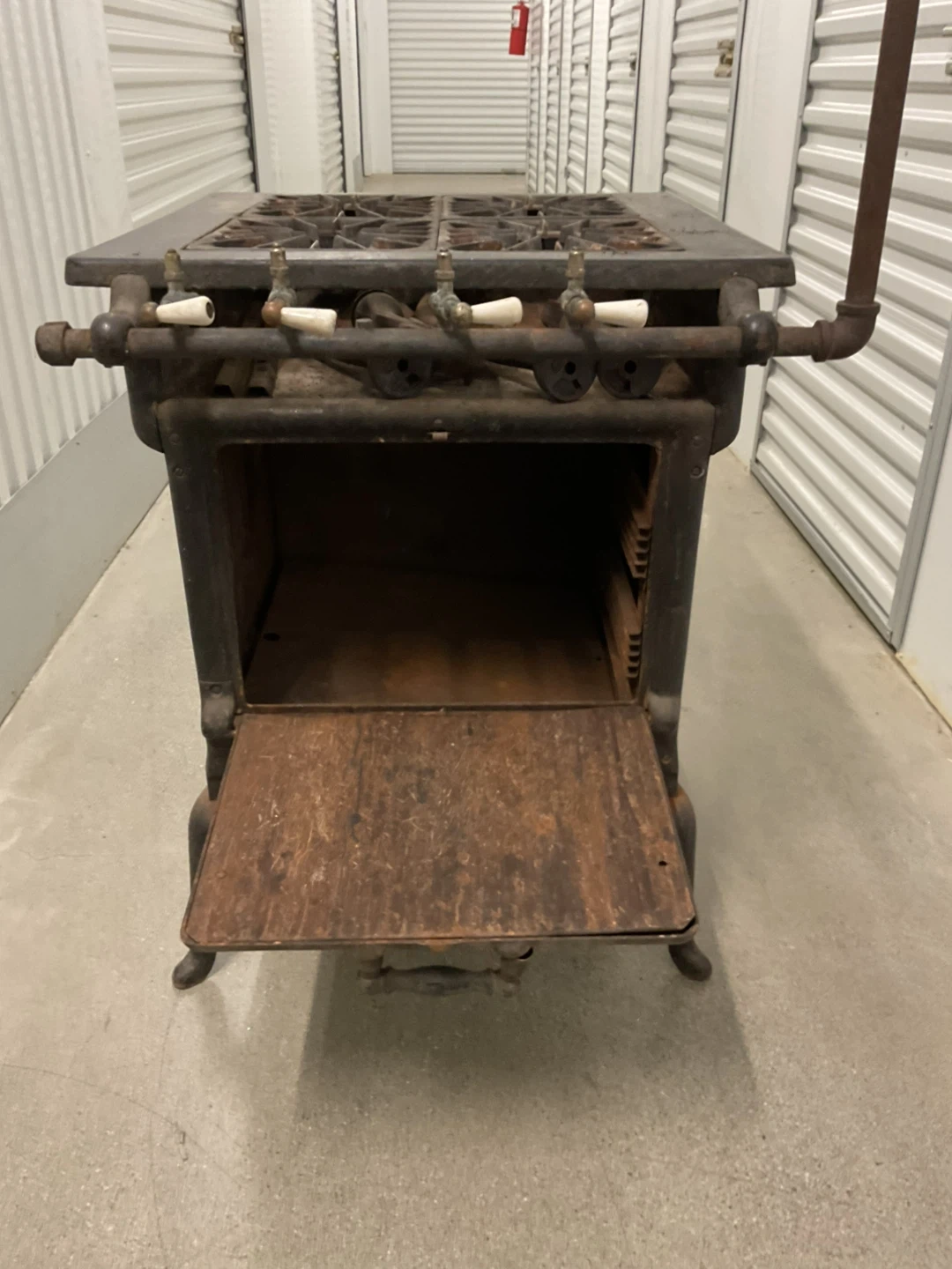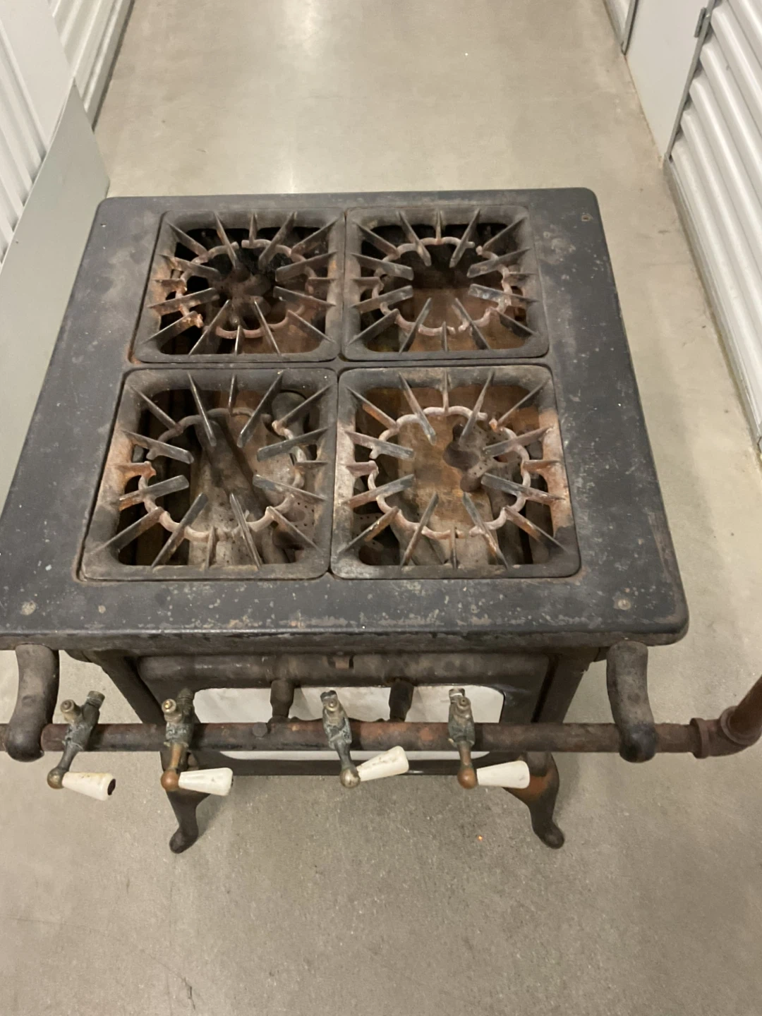 73Selling a vintage Stratford stove. It appears to be in used condition with some rust and wear. It features a four-burner stovetop and an oven. The oven door has the 'STRATFORD' logo on it. Perfect for a restoration project or as a unique decorative piece!
