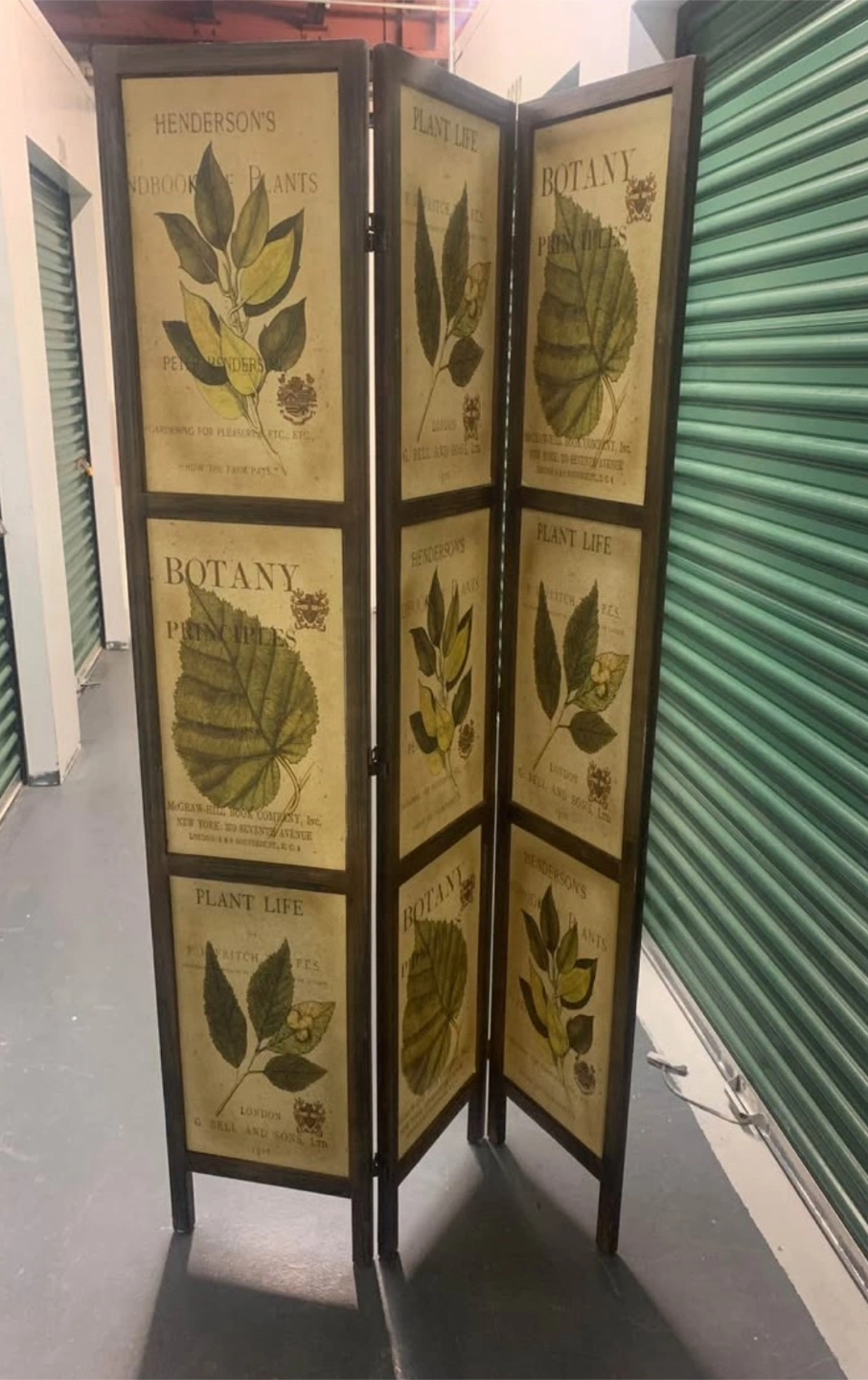 Add a touch of vintage charm to your space with this 3-panel room divider! The screen features botanical prints including "Henderson's Handbook of Plants" and "Botany Principles". It's perfect for adding privacy or creating a unique decorative accent in any room W-42 1/4” opened, H-71”