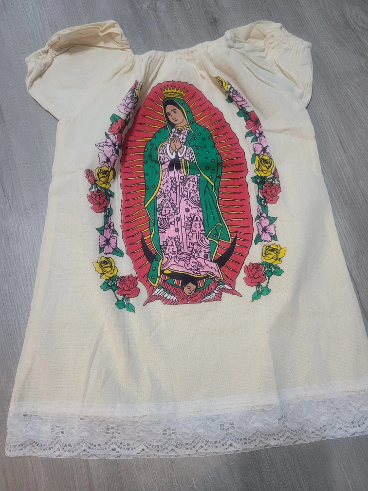 15lindo vestido para niña con la vigen de guadalupe de manta. solo se uso una vez