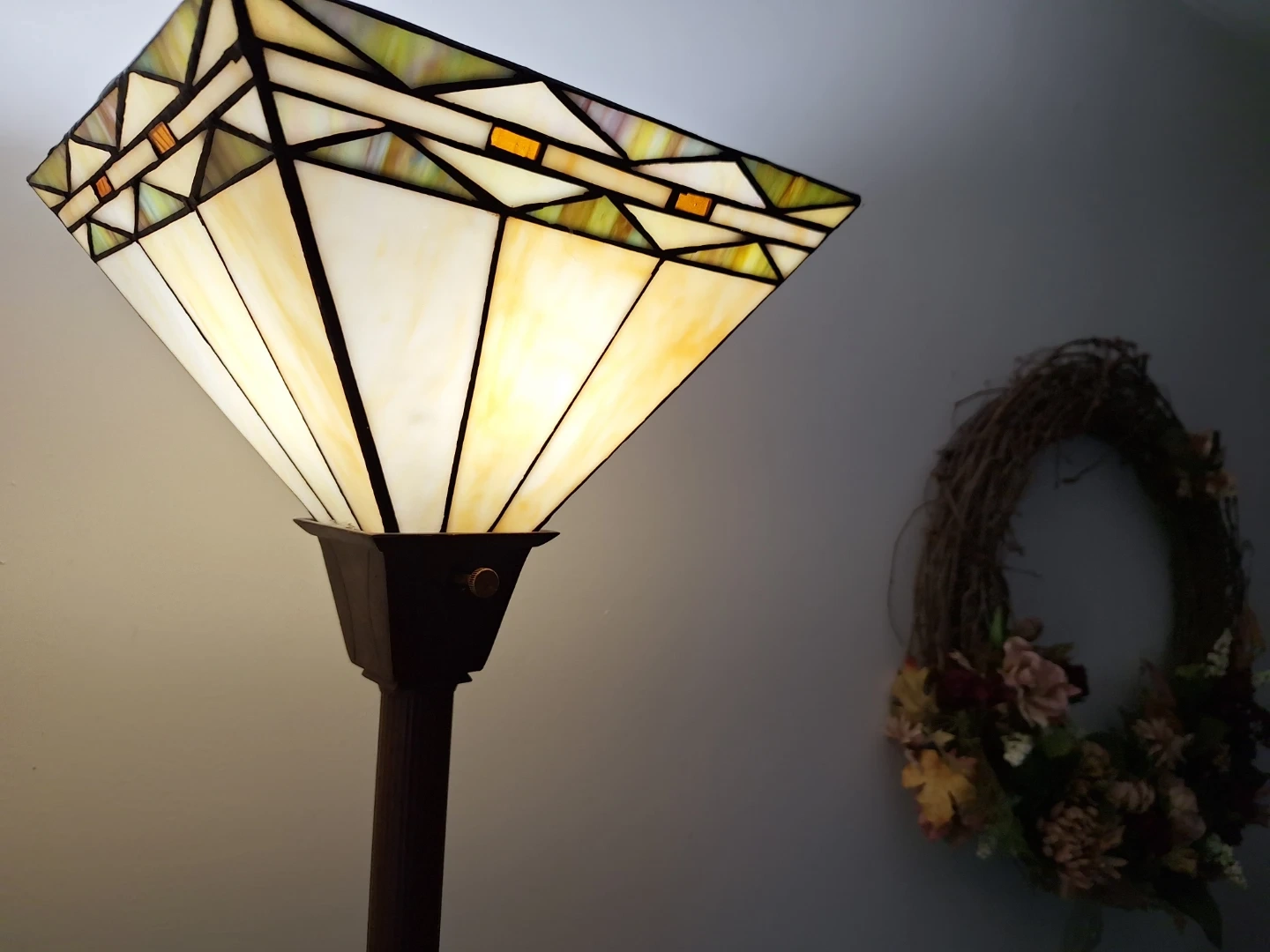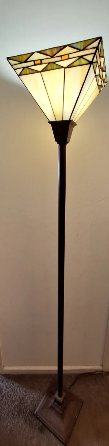 15Selling a beautiful vintage-style floor lamp! It features a unique stained glass shade with geometric patterns. The lamp has a sturdy base and a warm, inviting glow that would be perfect for any living room or bedroom. It will add a touch of elegance and vintage charm to your home!
