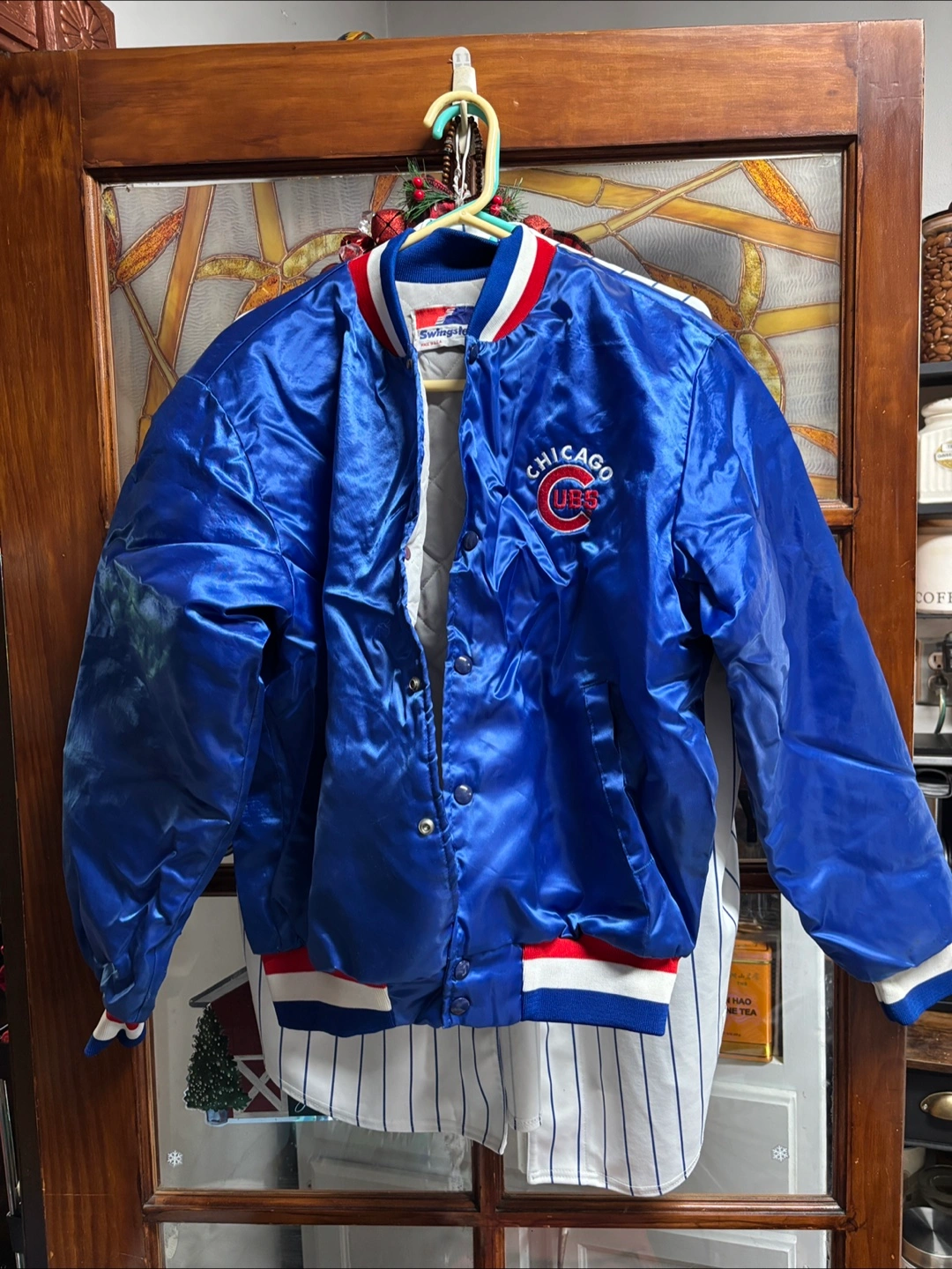 39Selling a vintage Swingster Chicago Cubs bomber jacket in size medium! It’s a vibrant blue with red and white accents. Perfect for any Cubs fan!
