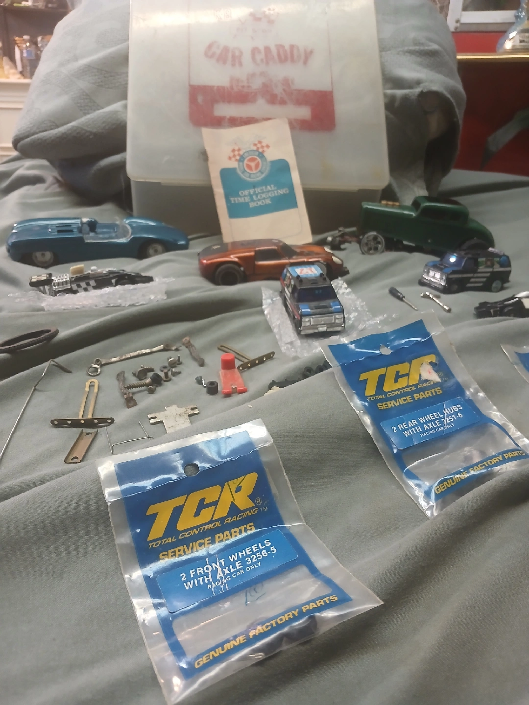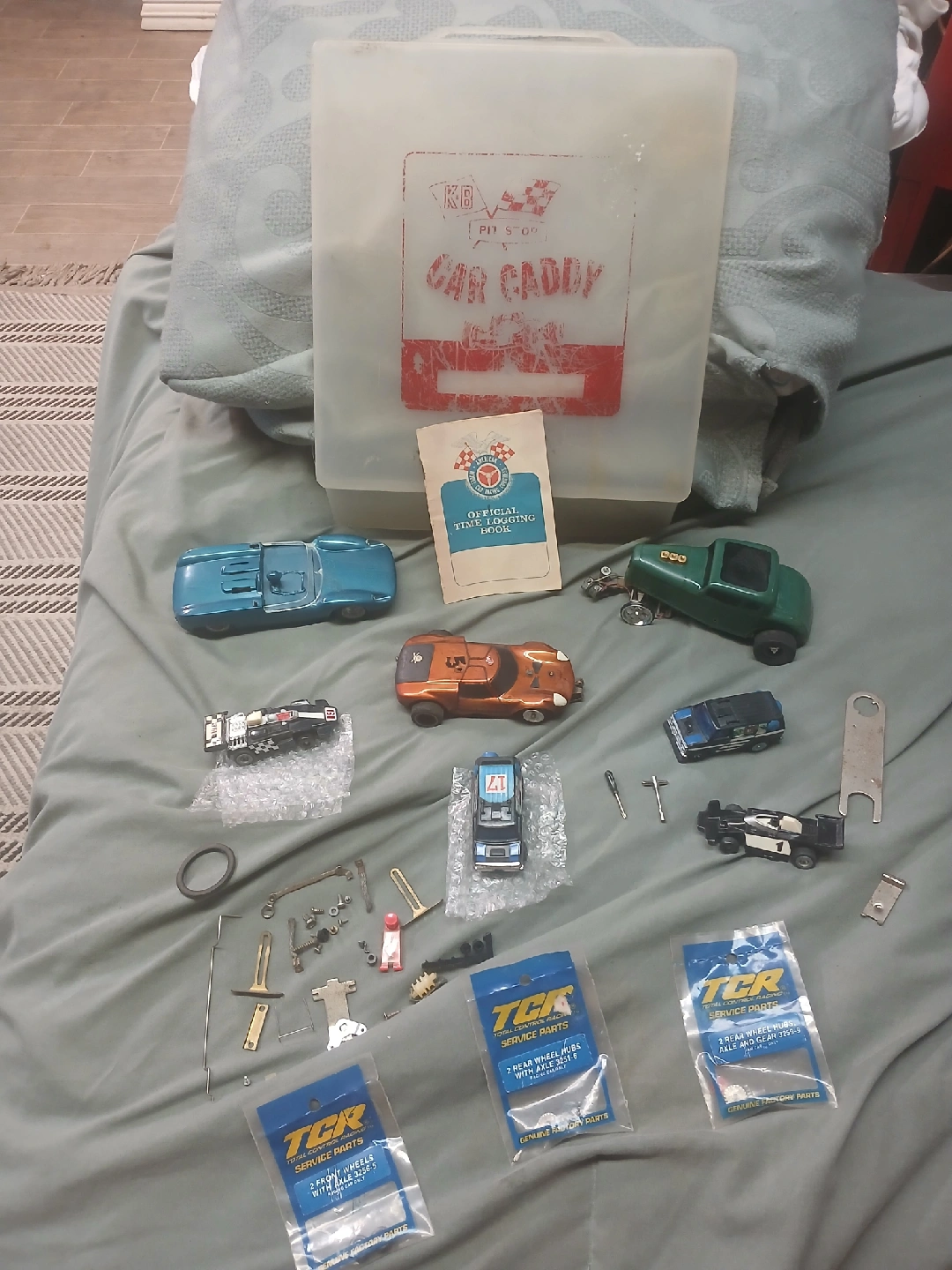 Selling a lot of vintage TCR slot cars and parts! Includes multiple cars in various colors and designs, along with a 'Car Caddy' case and some service parts. Great for collectors or anyone looking to restore some classic slot car fun. Spare Parts And Manual Included!
