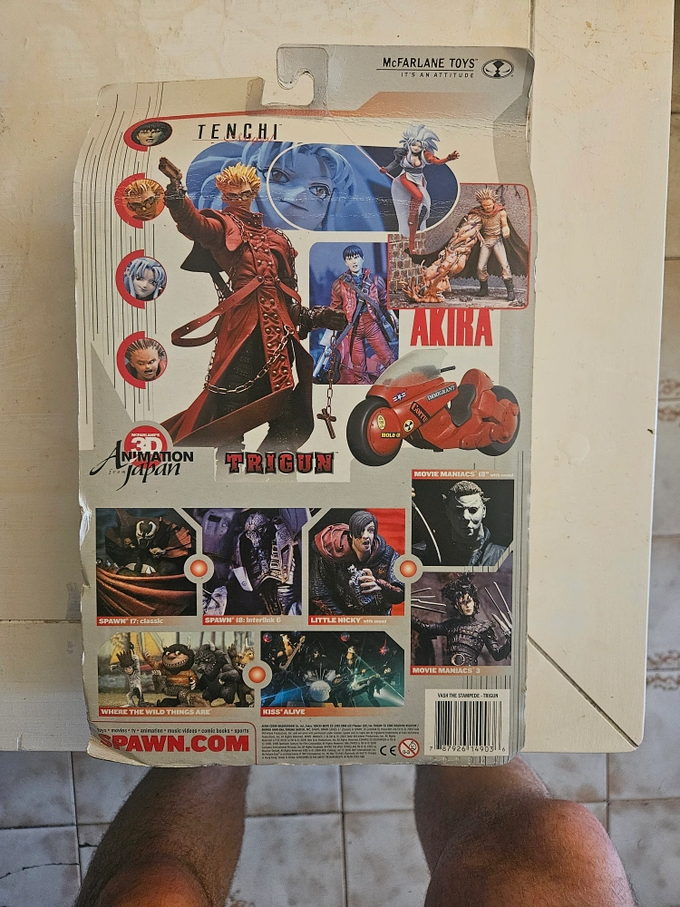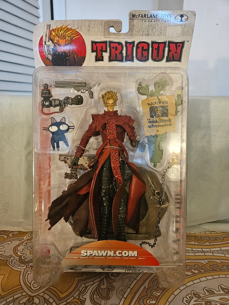 Selling a Trigun Vash the Stampede action figure by McFarlane Toys! It's in its original packaging. A great collectible for fans of the series. Slight crease at the top. Thats it.