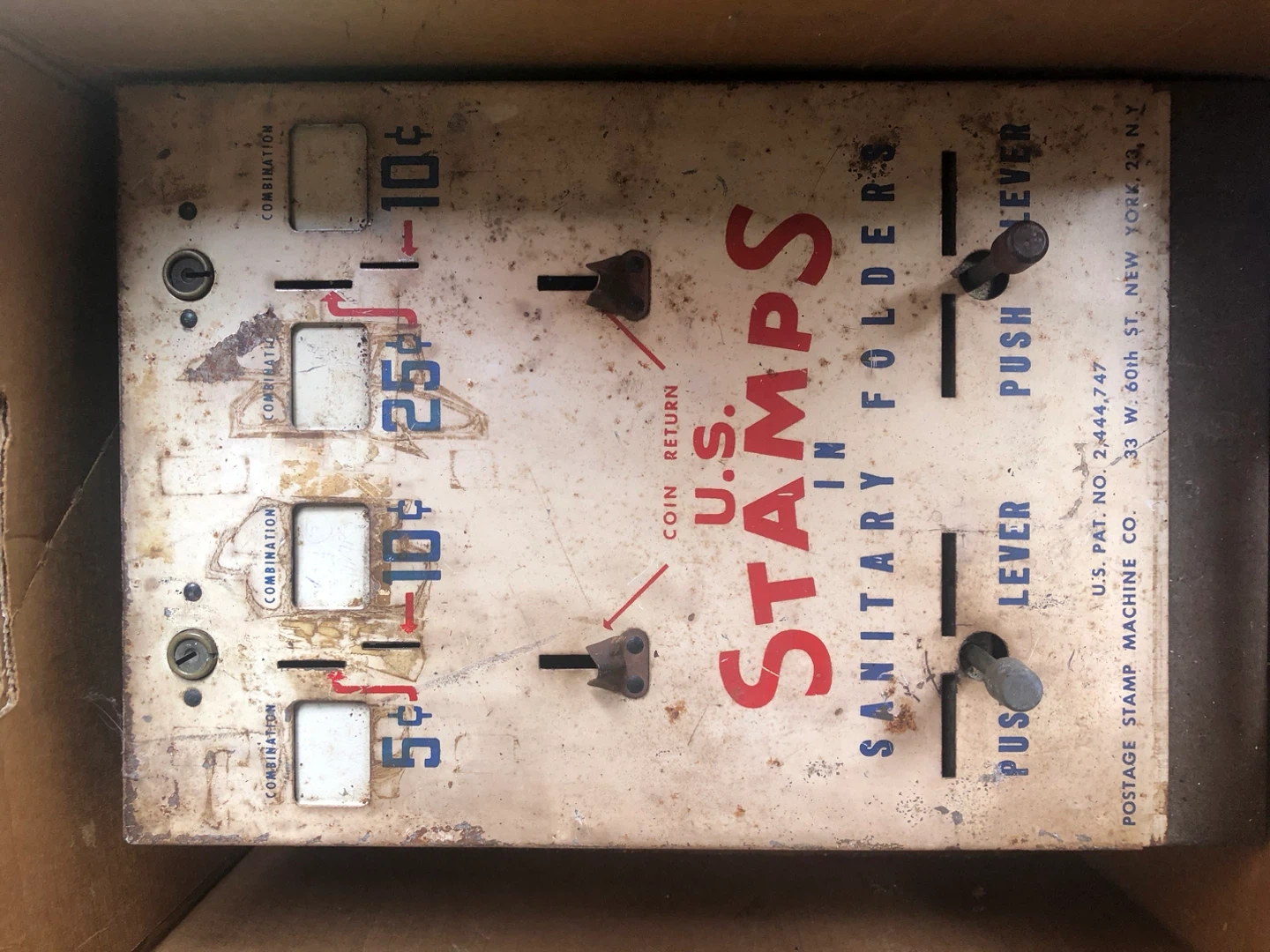 10Selling a vintage U.S. Stamps sanitary folder machine. It's in used condition, as you can see from the photos. Perfect for collectors or those interested in vintage vending machines