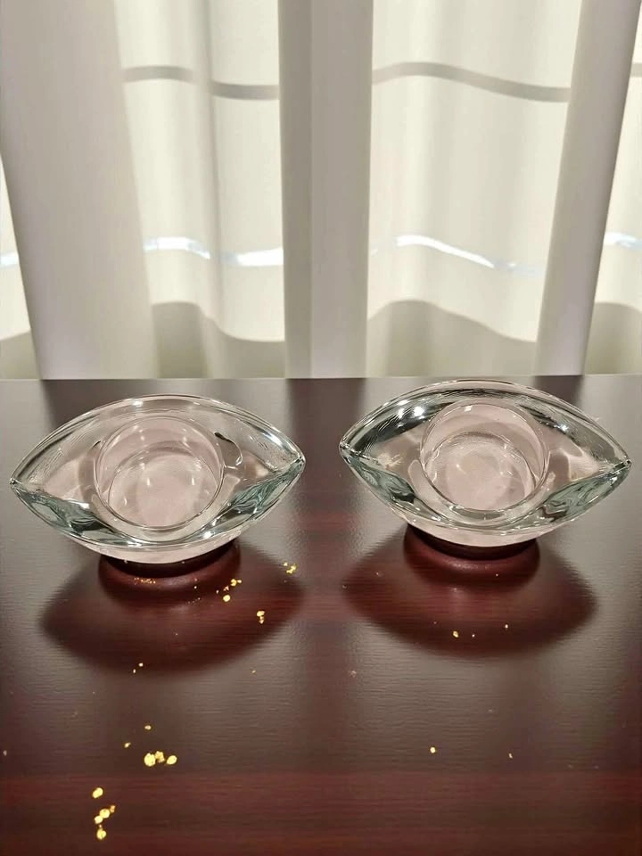 60Brand new. No scratches. Vintage handmade Votive crystal 2 candle holders. Purchase at NYC High-End Estate Sale