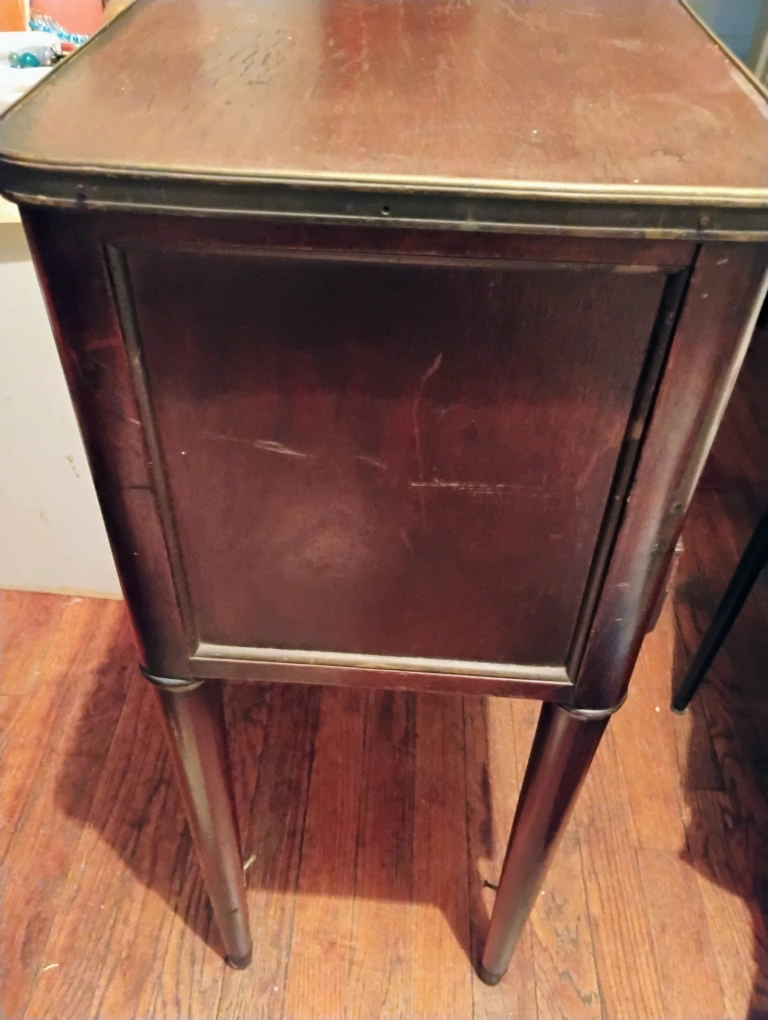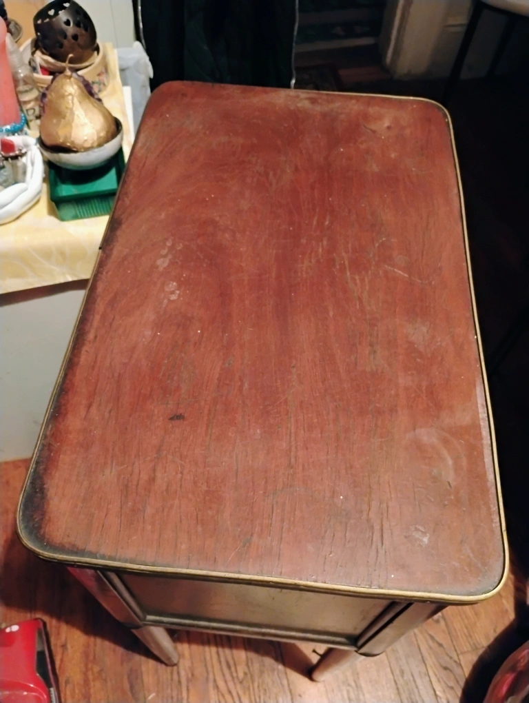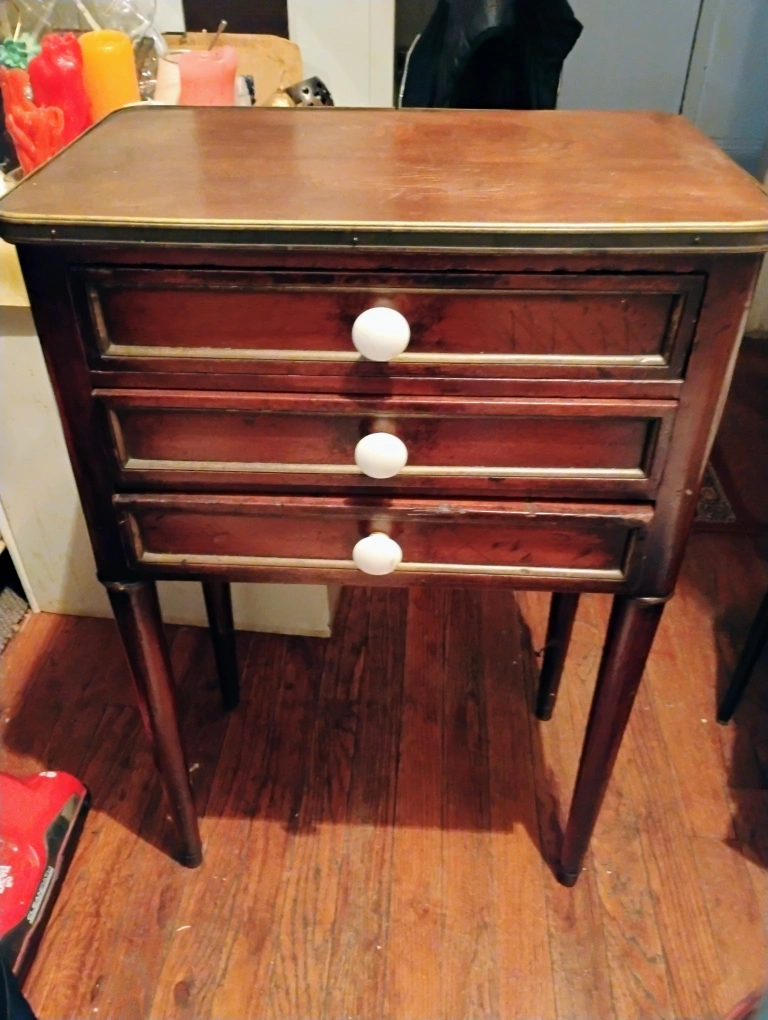 30Selling a vintage wooden side table with three drawers. It has a classic design with a dark wood finish and white knobs. Perfect for adding a touch of antique charm to any room! pick up only Elmhurst New York 113 73 on 79th Street half a block to Roosevelt avenue call me 718-457-8825 for more information thank you Rose
