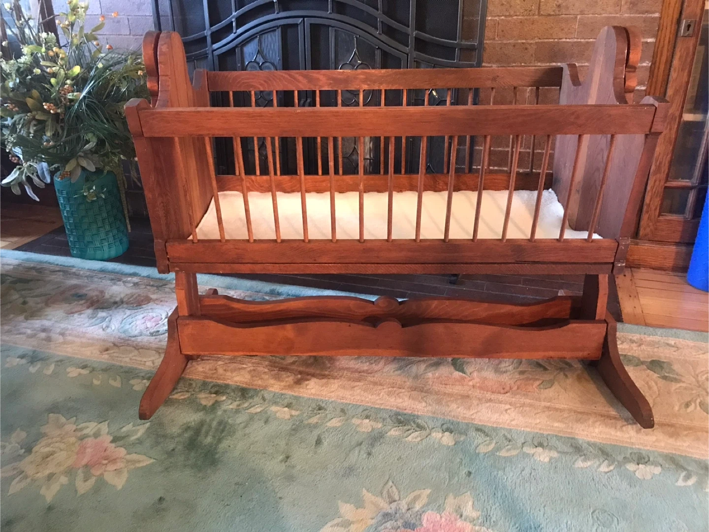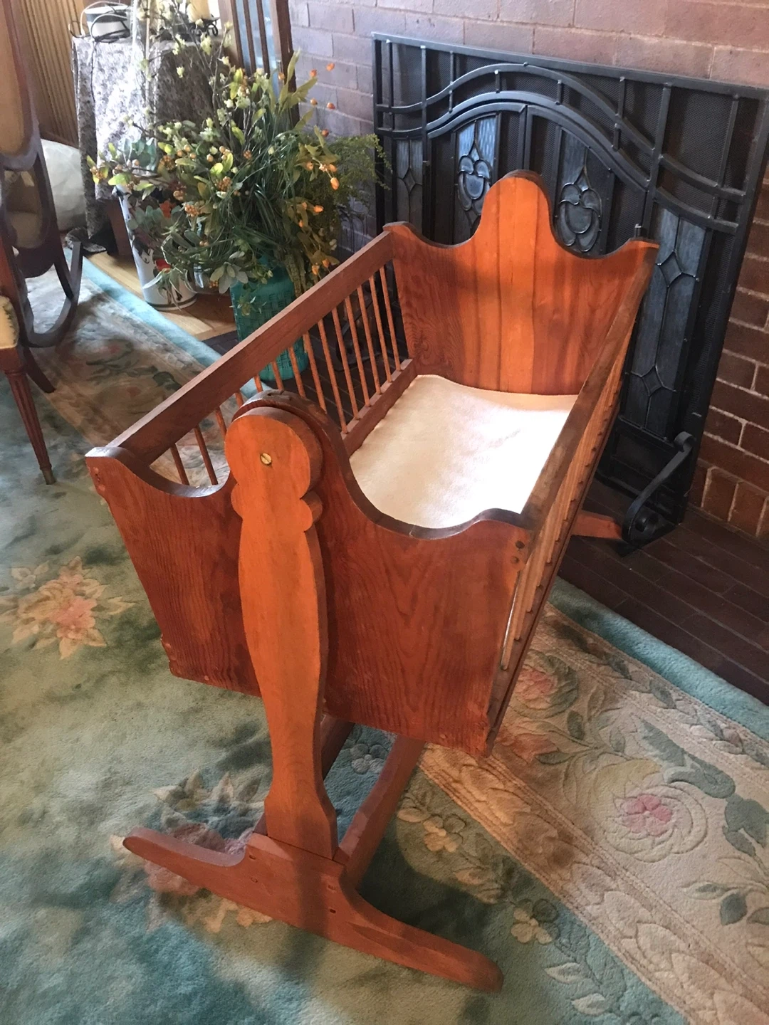 Selling a beautiful vintage wooden baby cradle. It's a lovely piece that would look great in any nursery or parents room. Handmade, re stained and sealed with Tung oil