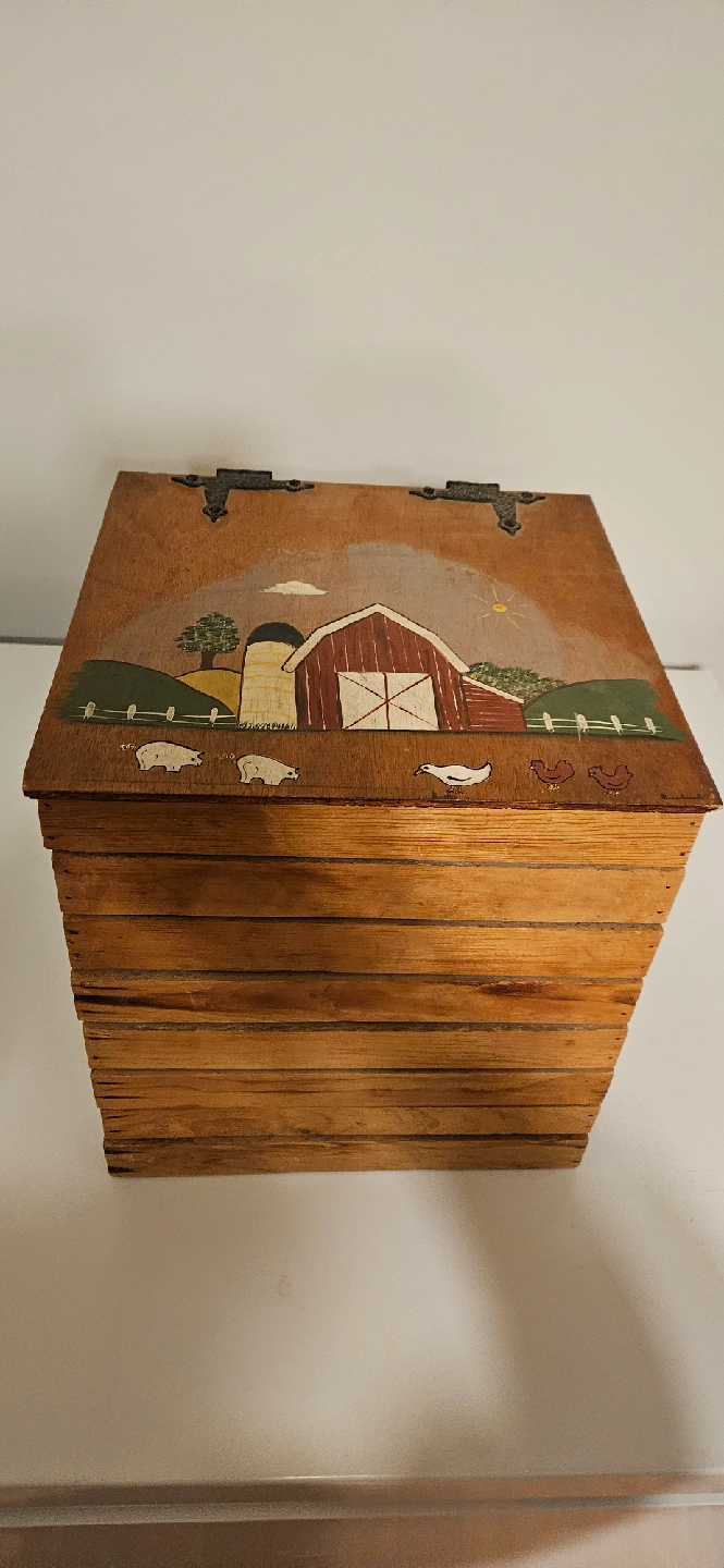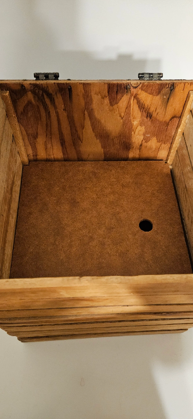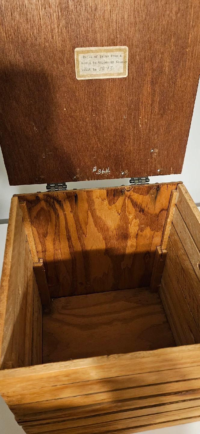 Selling a vintage wooden box. It's made of laths from a house in McDonough County, built in 1893. The box has a unique charm and character, perfect for adding a touch of history to your home decor