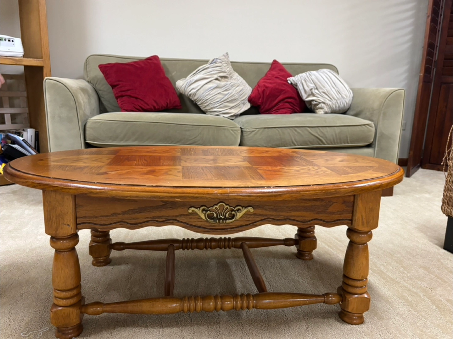 HomeBuy and sellVintage Wooden Coffee TableAndreaElgin100 reviewsVintage Wooden Coffee TableFurniture · $25Selling a vintage wooden coffee table. It has a beautiful, classic design with a patterned top and decorative details. The table is sturdy and in good condition.ConditionGoodWhere to meetLinder1 chat·0 favorites