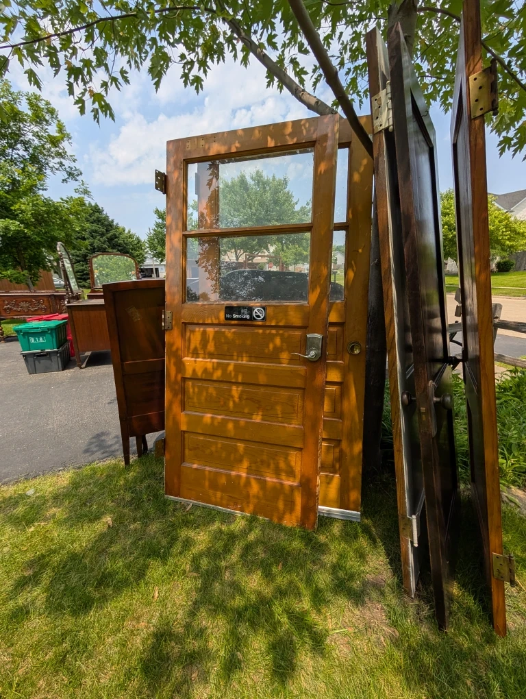 10Selling 8 vintage wooden doors pulled from 100 year old craftsman home in Wilmette, IL. They have a beautiful, classic look and would be perfect for a home renovation project or adding some character to your space. Two of the doors have a glass panel. Several of them show some signs of wear and tear, but that only adds to their charm! Some are varnished in a wood tone but have a painted side to them. Each sold separately. Would deal for the lot.
