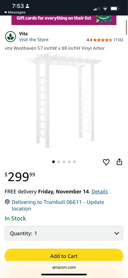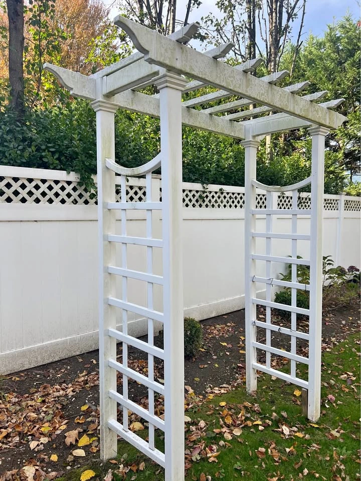 10Vinyl trellis arbor. It's 2 years old 57"wide x 88"H